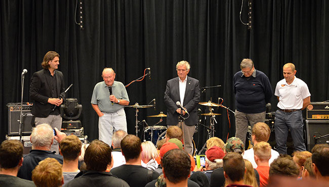 Chvíle před křtěním nového dresu. Horní foto zleva: moderátor Petr Palovčík, dále Stanislav Neveselý, Rudolf Chloupek, Jiří Běhounek a Bedřich Ščerban, na dolním fotu Oldřich Bakus. Foto: Tomáš Buksa