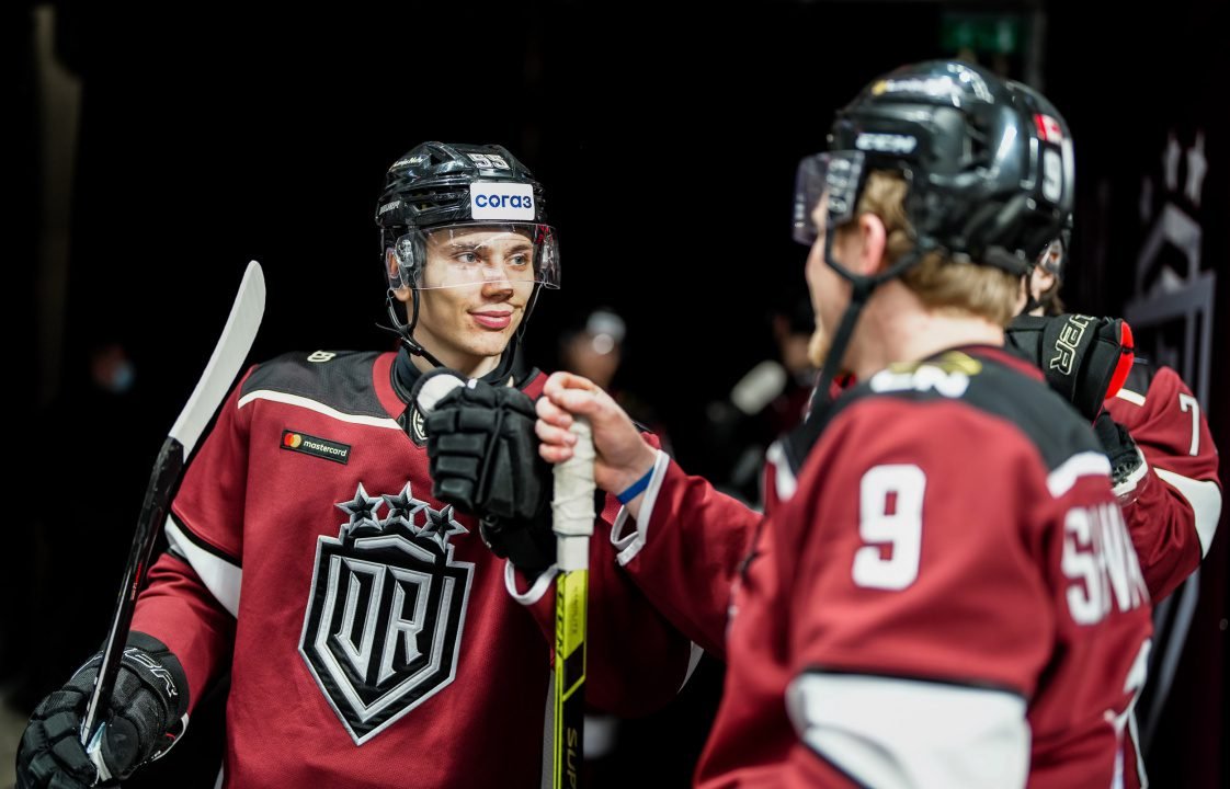 Patriks Ozols se kromě reprezentačních startů může chlubit také čtyřiceti zápasy v KHL během sezony 2021/22, tedy v době, kdy stále v Rusku působili hráči z celého světa. Foto: Raimonds Volonts/sportazinas.com