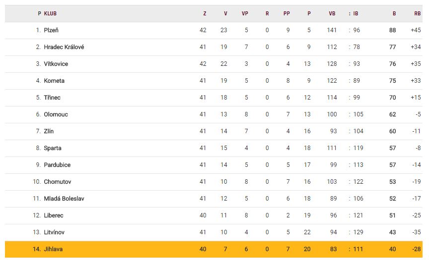 V rámci 41. kola přijela do Jihlavy pražská Sparta, posílena o útočníka Buchteleho, či trenéra Rulíka. Domácí sice měli aktivní vstup do zápasu, inkasovali však jako první z hole Pecha ve 4. minutě. Hra Dukly se následně úplně rozsypala a hosté přidali ještě dvě trefy do úvodní dvacetiminutovky. V druhé třetině pokračovali Sparťané v koncentrované hře a Jan Buchtele ve svém prvním utkání během oslabení navýšil již na 4:0. Dukla korigovala góly Čachotského a Anděla, de la Rose v přesilovce následně vyslal tečovanou střelu, která skončila na spojnici tyčí. I přes snahu Dukly něco s výsledkem udělat, se skóre neměnilo a Jihlava tak podlehla, 2:4. Premiérový zápis do extraligy si zaznamenal mladý gólman Josef Kořenář, ten střídal Voldena po čtvrtém inkasovaném gólu. „Premiéra byla z mojí strany dobrá, protože jsem nedostal gól,“ okomentoval trochu vtipně svůj výkon Kořenář.