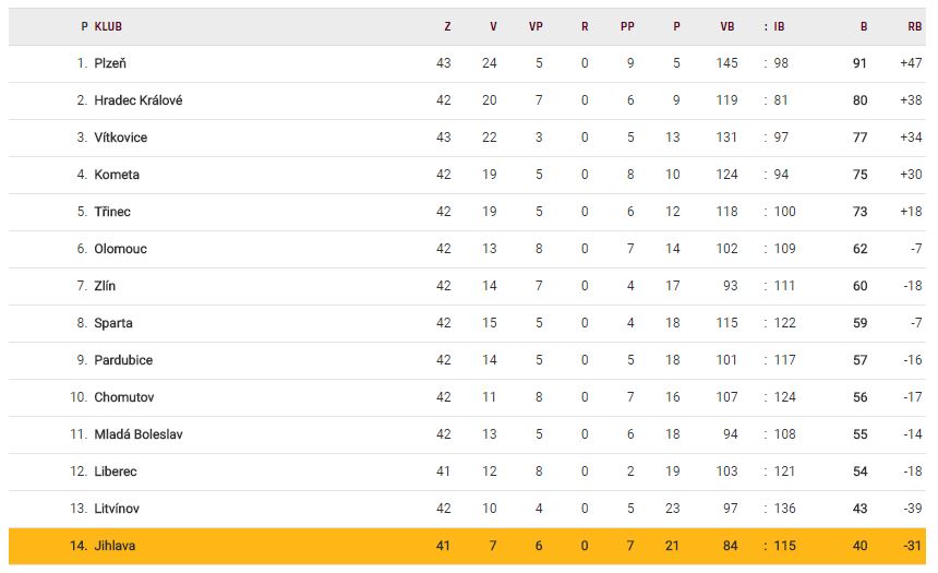 Ani Litvínov na tom není nikterak dobře. Chemici, kteří odehráli 42 utkání a mají tak o zápas více než Dukla, aktuálně nasbírali 43 bodů. I Litvínov si je moc dobře vědom důležitosti zápasu. Tým, který táhne trio Viktor Hübl (nejproduktivnější hráč, 11+20) s Františkem Lukešem (9+17) a nejlepším střelcem Františkem Gerhátem (13+6), totiž prohrál posledních osm zápasů a bodoval pouze v prvním z nich, když doma podlehl Chomutovu 2:3 na samostatné nájezdy. V útoku to ještě litvínovským jakž jde, blíží se stovce vstřelených branek, ale obrana zatím hodně vázne. Se 136 obdrženými góly jsou černožlutí nejvíce inkasujícím týmem TELH.