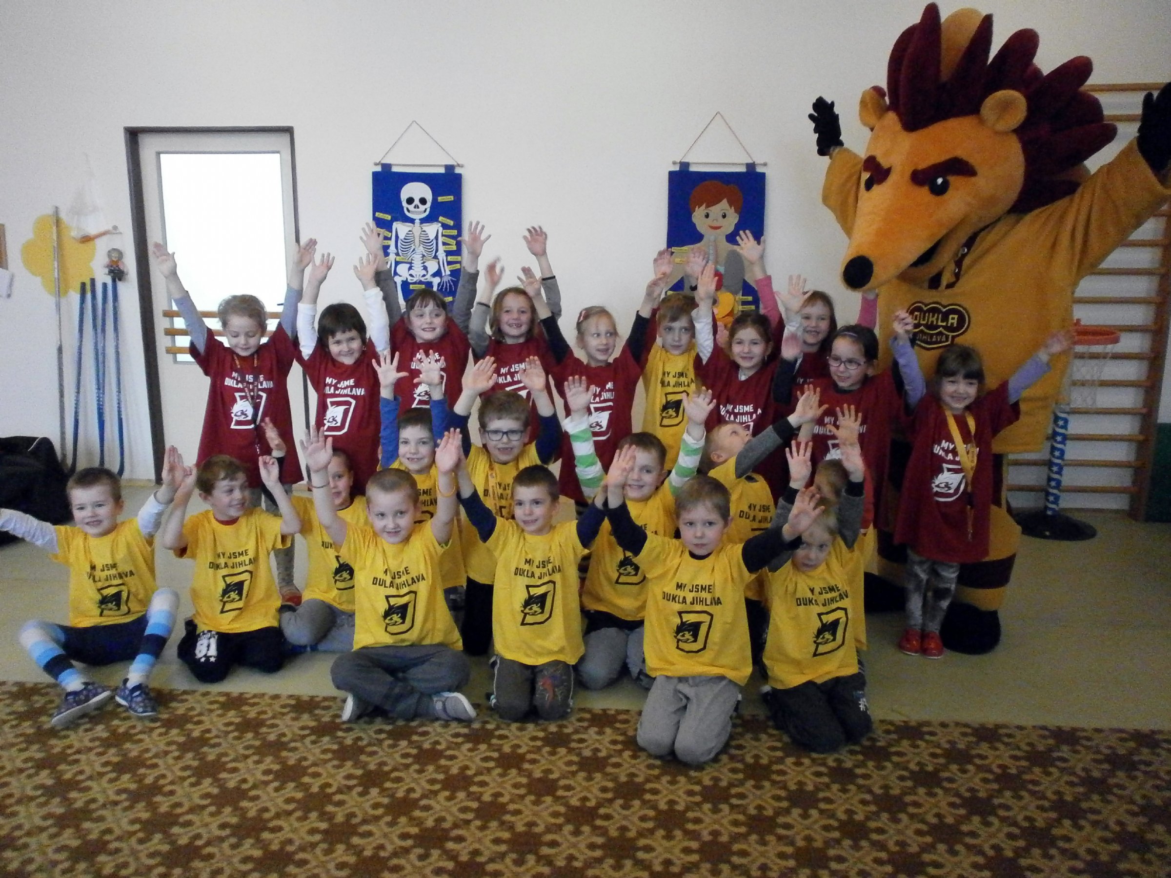 Po Cejli, Lukách nad Jihlavou a Brtnici Dukla zavítala také do Dobronína a Velkého Beranova - foto zde, a naposled v pátek 9.2.2018 do Jamného. Ohlasy jsou pozitivní, malým dětem i učitelkám/vychovatelkám se návštěvy líbí. Tím spíše, že na závěr celé akce přijde překvapení v podobě návštěvy dukláckého maskota ježka JD. „V Dobroníně způsobil maskot velké nadšení. Děti i učitelky z něj byly tak nadšené, že postupně obešel úplně všechny třídy ve školce,“ prozrazuje Tomáš Lysý z marketingového oddělení Dukly, který spolu s Vladimírem Šťastným (organizační pracovník klubu) Lukáši Sáblíkovi pomáhá.