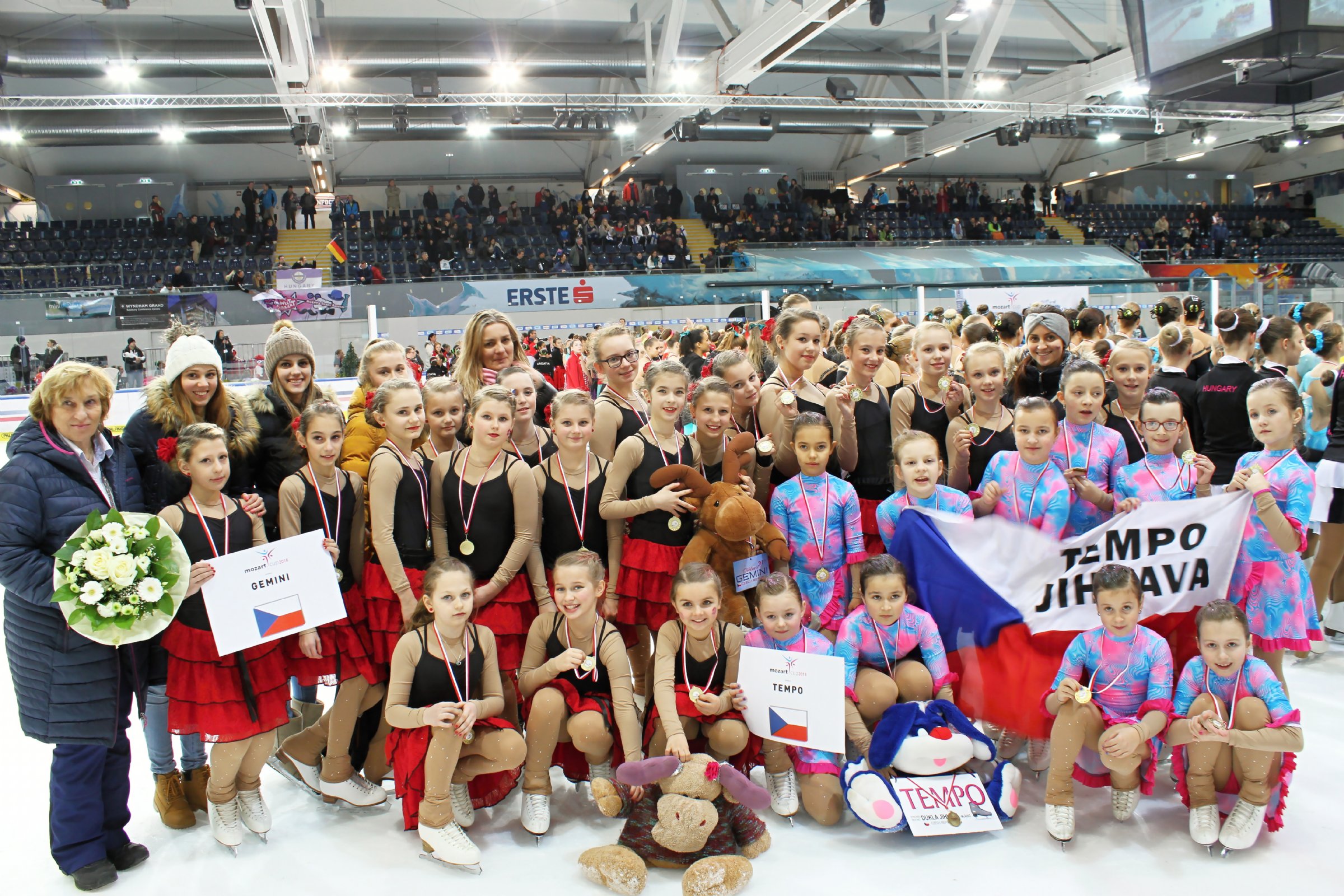 V kategorii mladšího žactva se představily týmy Gemini a Tempo. Na soutěž se velmi důkladně připravovaly. „S dětmi je náročné nacvičovat choreografii týmového krasobruslení. Je potřeba tomu věnovat hodně času a trpělivosti. V Salcburku jsme počítali s dobrým výsledkem pro Gemini a zlepšením pro Tempo. Mladší tým nás velmi příjemně překvapil, nechal za sebou 4 soupeře z Německa, Rakouska a Maďarska. Oba žákovské týmy zajely bezchybné jízdy. Gemini přivezly do Jihlavy bronzové medaile. Celý oddíl je na tento úspěch velmi pyšný,“ řekla trenérka žactva Linda Haferníková.