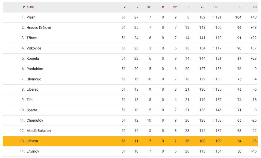 Tabulka TELH po 51. kole: