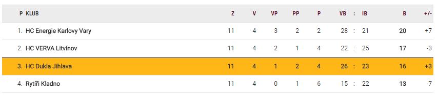 Nutno však dodat, že ačkoliv byla remíza po základní hrací době na zápas Energie – Verva jakkoliv očekáváná, třeba říct, že Dukla ztratila onu možnost uhrát si vše sám a neohlížet se na soupeře v jiných zápasech. Namátkou stačí připomenout druhé kolo v Karlových Varech, kdy červenožlutí ještě minutu před koncem vedli 2:1 a padli 2:3 po prodloužení. Mrzí třeba i domácí zápas s Energií, zkraje třetí třetiny za stavu 1:2 zastavila jihlavskou radost spojnice břevna a tyče. Mrzí i druhý dvojzápas s Litvínovem. V devátém kole doma proti Vervě chybělo v závěrečné přesilovce ke třem bodům jen málo, Dukla nakonec vyhrála na nájezdy. A hlavně zápas v Litvínově, kdy Jihlavští během třetí třetiny trpělivě bránili svůj náskok 2:1 (podobně jako v šestém kole Energie na jihlavském ledě), nicméně velice šťastný gól Litvínova na 2:2 sedm minut před koncem zápas zlomil na stranu Vervy…