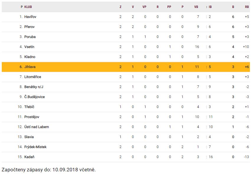 Tabulka Chance Ligy 2018-2019 po 2. kole: