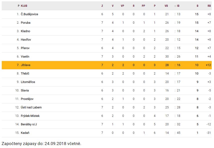 Tabulka Chance Ligy 2018-2019 po 7. kole: