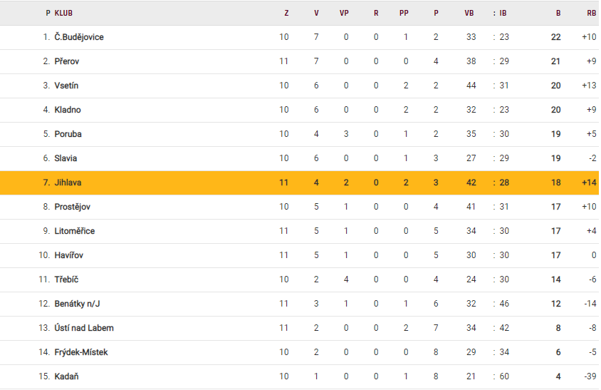 Na dobrou přípravu se ale Vsetínu v úvodu soutěže nepovedlo navázat. Po prohře v Prostějove sice přišla očekáváná demolice Kadaně 11:0, ale to bylo na celý týden vše. Následovaly prohry na Kladně, s Havířovem a Ústím. ROBE se chytlo až v zápase s Třebíčí, který zvládlo 4:3 a od té doby sbírá samé výhry. Větší gólový rozdíl ale přišel až v posledních dvou gólech, nejprve odjela Poruba podruhé s prohrou, tentokrát 2:6 a ani Benátky nedobyly Lapač, neboť prohrály 1:5.