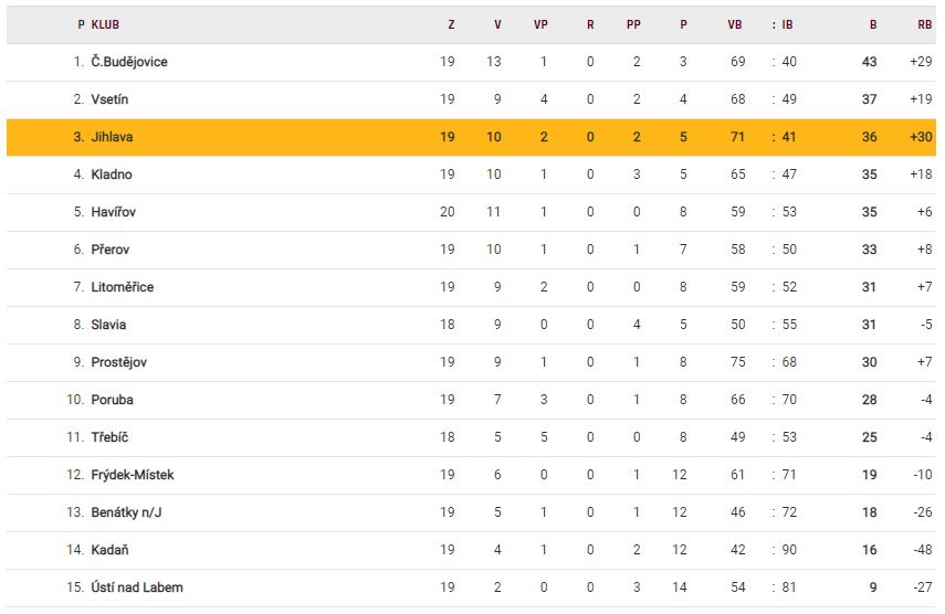 Tabulka Chance Ligy po 20. kole