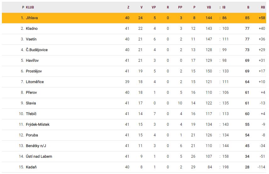 HC Dukla Jihlava: Brož – Pohl, Budík, Štebih, Mareš, Štindl, Vála – Anděl, Skořepa, Zeman – Jiránek, Hlinka, Dostálek – Havránek, Werbik, Hrníčko – Půža, Harkabus, Čermák