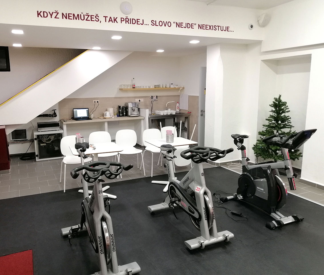 Boxovací pytel, rotopedy, veslařský trenažér, běžecký pás, umělý led a další cvičební pomůcky, včetně několika "vychytávek" nabízí pětice místností v podzemí.