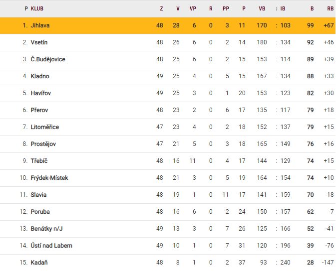 Co se posledního zápasu Dukly týče, ten dopadl naprosto jednoznačně. Ústecký Slovan se držel pouze v první třetině, v té druhé dostal hned šest branek a konečný výsledek se ustanovil na skóre 7:1. Díky zaváhání Vsetína se tak náskok Dukly na čele navýšil. „Ze začátku to byl vyrovnaný zápas, než jsme se trošku rozjeli a napadali nám tam nějaké branky. Pak jsme soupeře zlomili a jsme rádi, že jsme se se ním netahali o výsledek až do konce,“ byl spokojen David Kajínek, po zranění Josefa Skořepy v Havířově dočasný kapitán Dukly, navíc proti Ústí vsítil svůj první gól sezony.