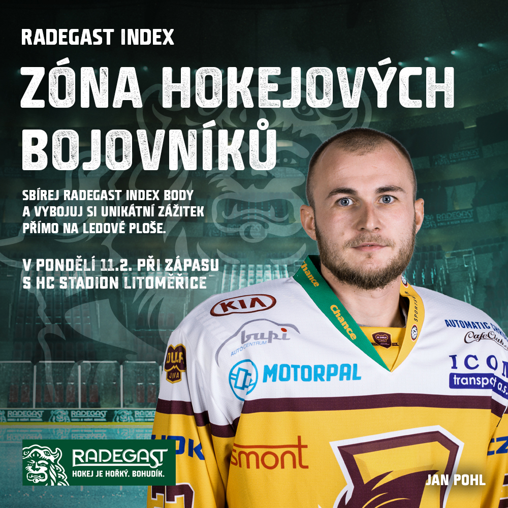 Oblíbená fan akce Radegastu opět přichází na Horácký zimní stadion. Při utkání HC Dukla Jihlava – HC Stadion Litoměřice, které je na programu 11. února 2019 od 17:30 hodin, budou moct fanoušci navštívit Radegast Zónu hokejových bojovníků. Návštěvníci zápasu si můžou vyzkoušet tradiční střelbu na branku nebo rozdat pořádný hit. A pro opravdové siláky je připravený simulátor blokování střel! U toho nesmíte chybět! Podrobnosti najdete na Facebooku Zóny Hokejových Bojovníků. Na zápasu u vchodu z parku bude i Promotým Hitrádia Vysočina – více zde.