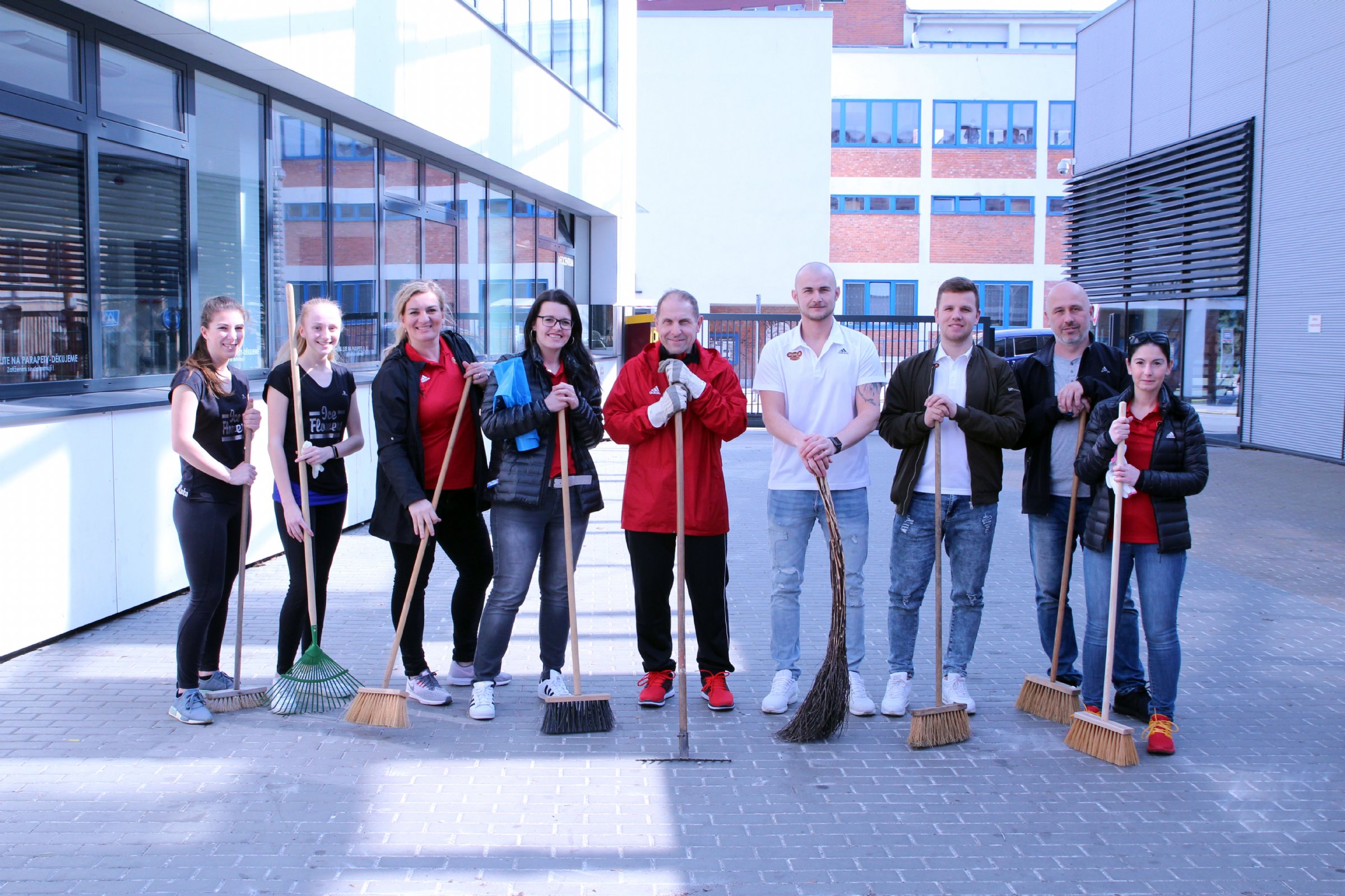 „S podobnou akcí jsme se ještě nesetkali, bylo to poprvé,“ hlásili po zametání Jan Pohl a Lukáš Anděl. První jmenovaný rychle popadl podomácku vyrobené koště a jal se do úklidu. „Zametání není moje oblíbená činnost, ale s tímto koštětem jsem toho nemusel tolik dělat, proto jsem si ho vzal do ruky,“ rozesmál se obránce Dukly Jihlava, který má za sebou na Vysočině první sezonu. „Jsem tady prvním rokem a je to tady čisté, takže vždy je co zlepšovat,“ podotkl „Pohlík“, který následně pomáhal kolegům a kolegyním držet velké pytle na odpad. Lukáš Anděl pro změnu ukázal, že mu to jde i s lopatou a hromádky nečistot shrnoval do pytlů. „Já s těmito věcmi problém nemám, ale myslím si, že s hokejkami nám to jde lépe,“ smál se „Andy“.