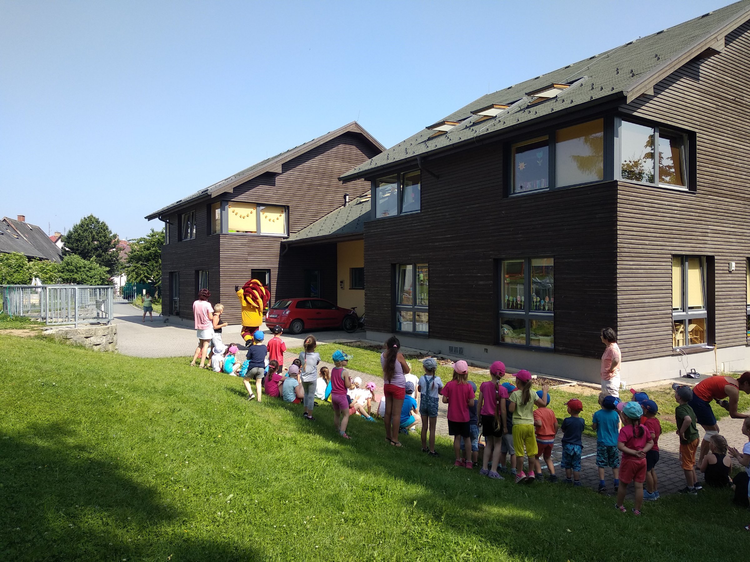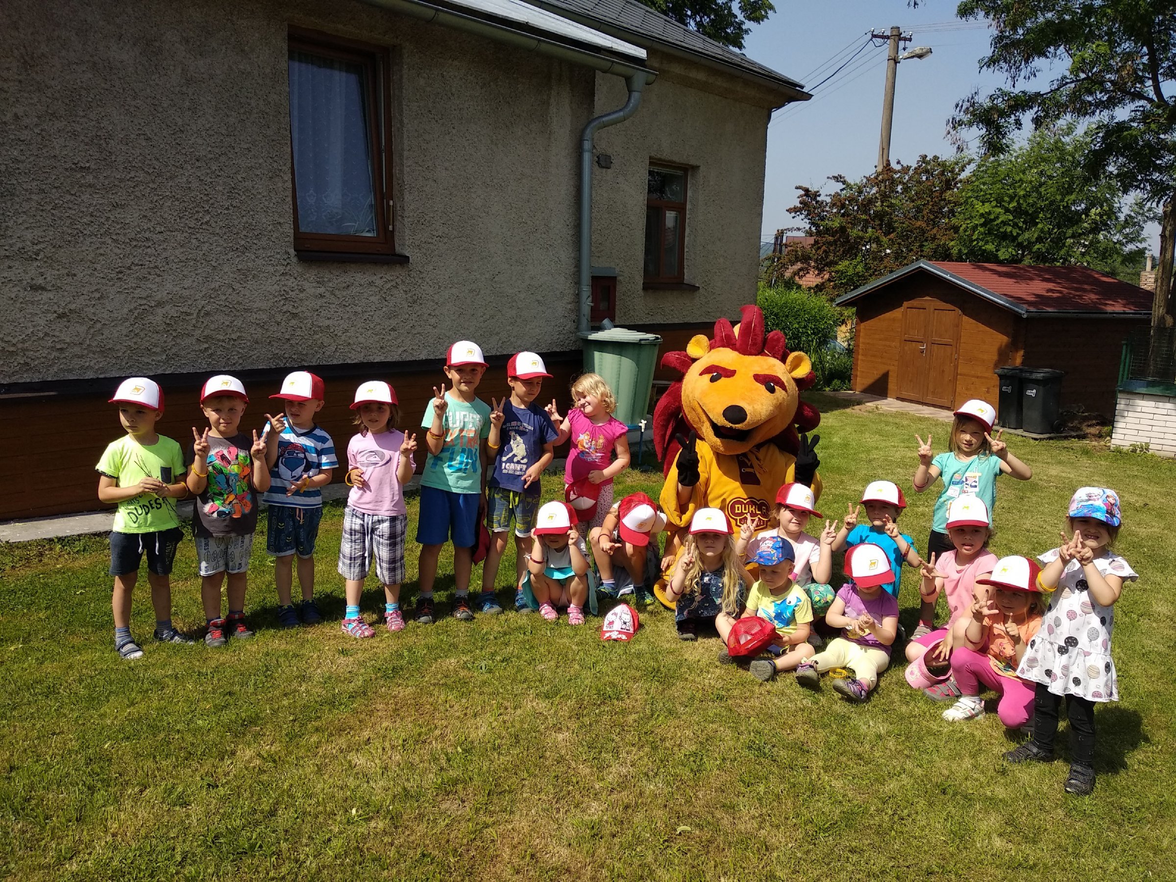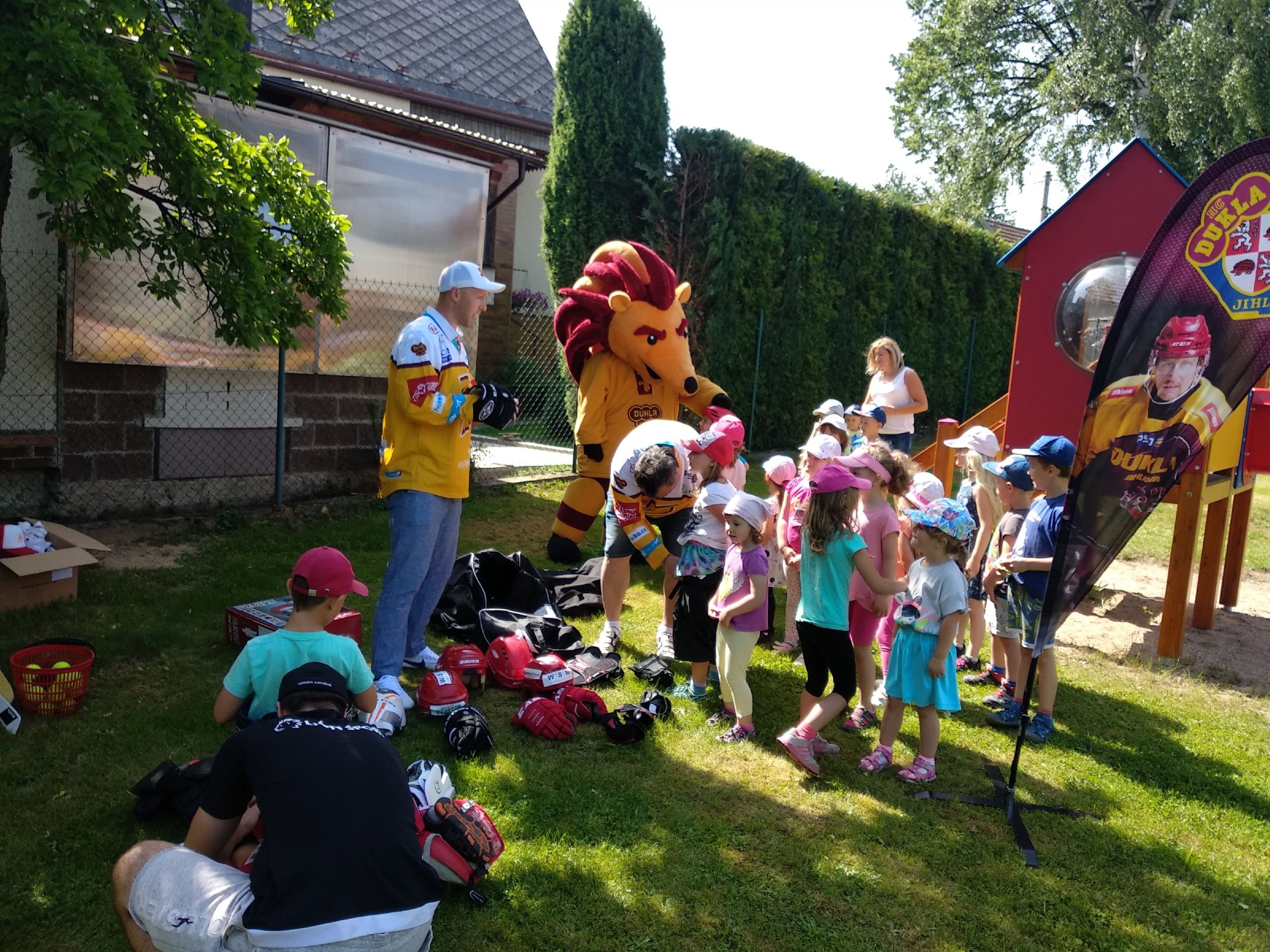 Školku před nedávným časem výrazně v činnosti omezil požár a děti se musely na čas úplně odstěhovat. Dnešní den jim snad definitivně dal zapomenout a připravil je na blížící se prázdniny. Některé se k JDýmu hned hlásily a připomínaly focení na HZS v rámci zápasů Dukly. Některé byly trochu v šoku, protože tak velkého ježka ještě neviděly. Všechny ale společně nakonec skandovaly: „Nejlepší je Dukla!“ a “Ježek, ježek, ježek…!“