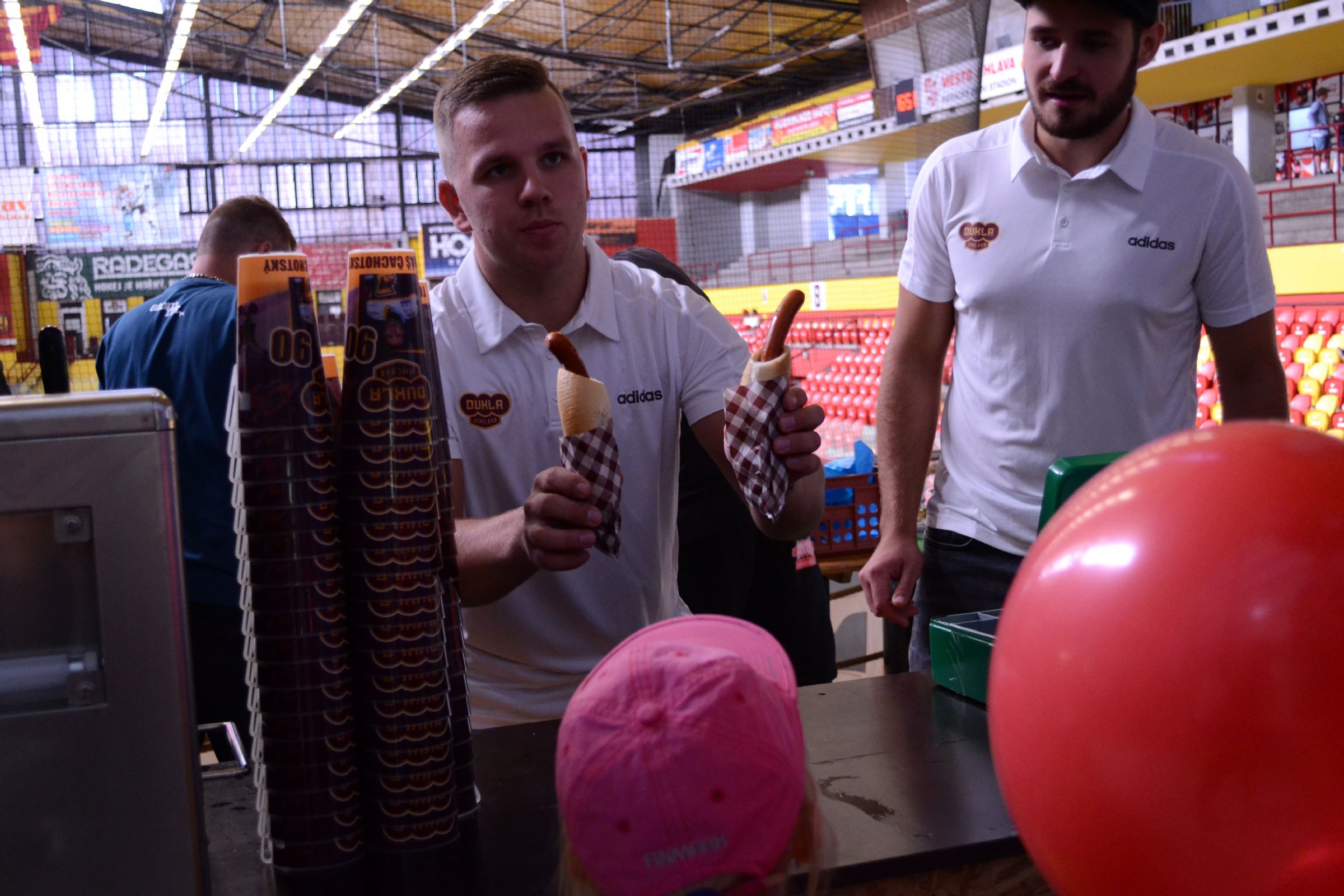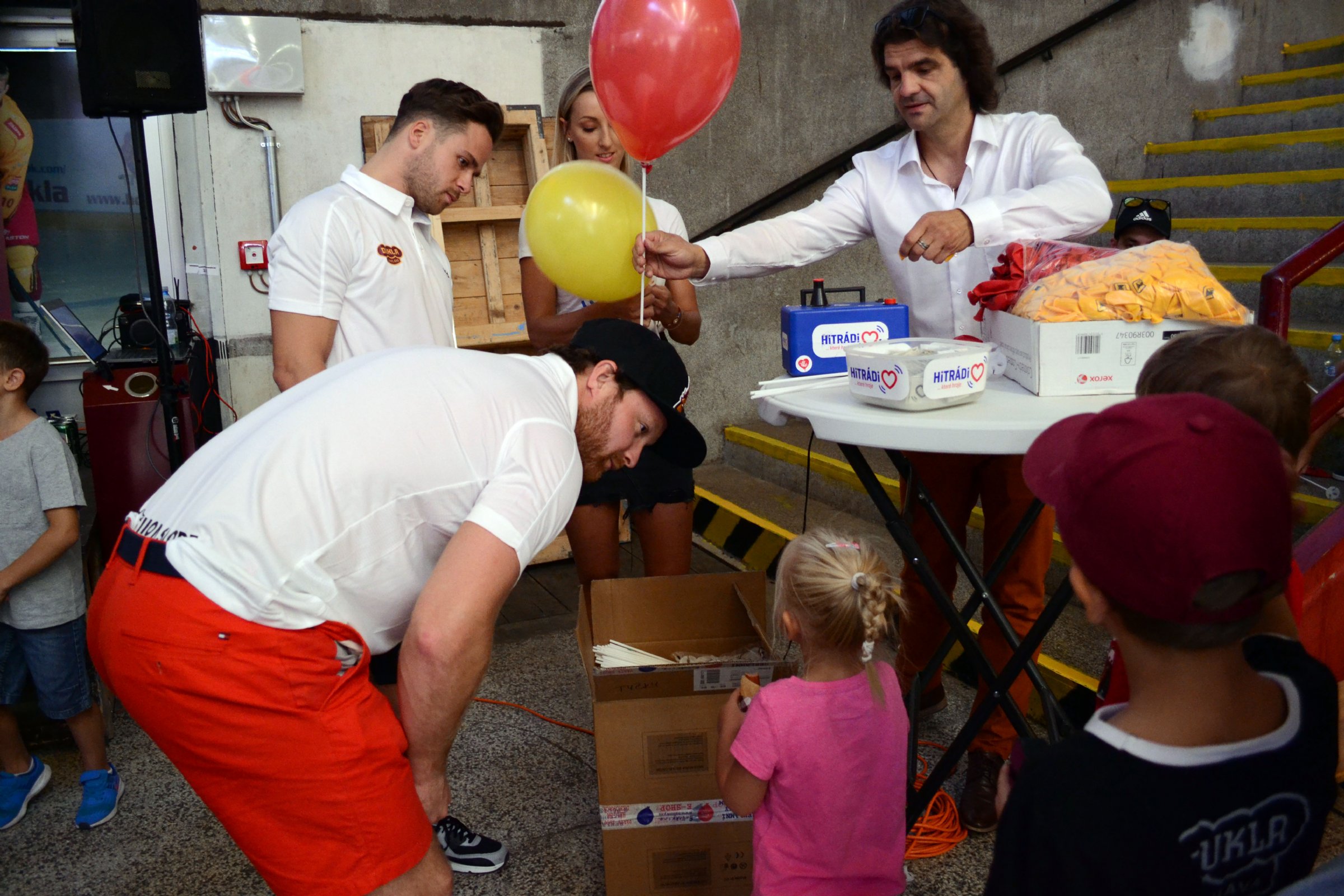 I těm nejmenším se věnovali dva plejeři z jihlavských řad, nafukovací balonky s novým logem distribuoval vyhlášený vtipálek Matěj Pekr, k ruce mu pak byl další neméně známý bavič Adam Zeman. „Jako prodavač balonků bych se uživil. Myslím si, že jsem byl dobrý a měl jsem největší odběr, takže určitě. Plíce? Tam byl naštěstí kompresor, ale já bych to sám udýchal,“ odpověděl Matěj Pekr v tradičně dobrém rozmaru.