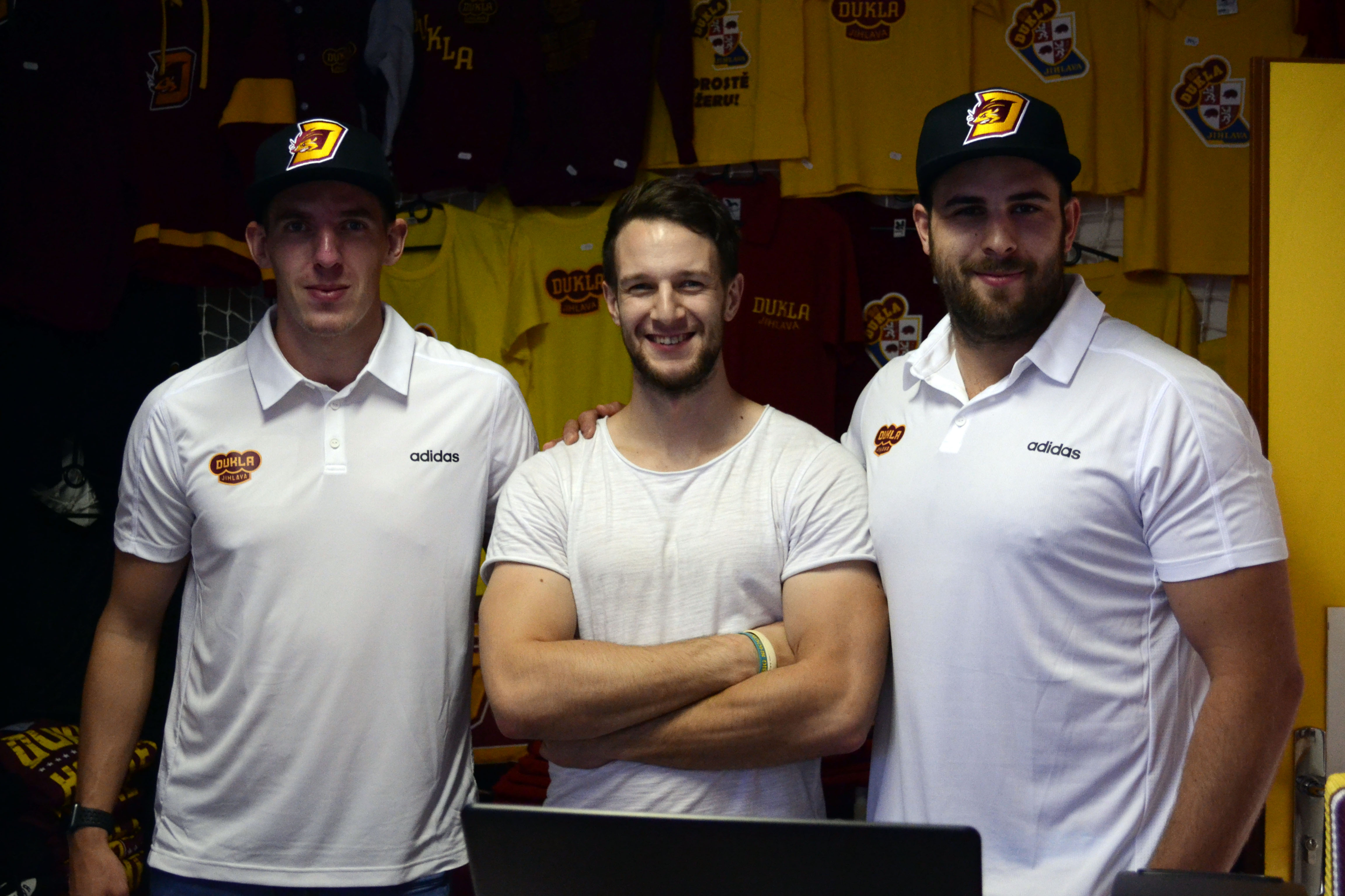Prodávání ve fanshopu dostala na starost dvojice Jan Holý a Michal Poletín. Jak se Honzovi dařilo na jeho „prodejním úseku“? „Je to super, přišlo hodně lidí a jsme rádi, že takhle všichni přišli. Prodal jsem pár čepic, pár puků. Šlo to docela dobře a možná bych se jako prodavač uživil,“ otevírá lehce jihlavská #43 otázku, co bude třeba dělat po skončení kariéry.