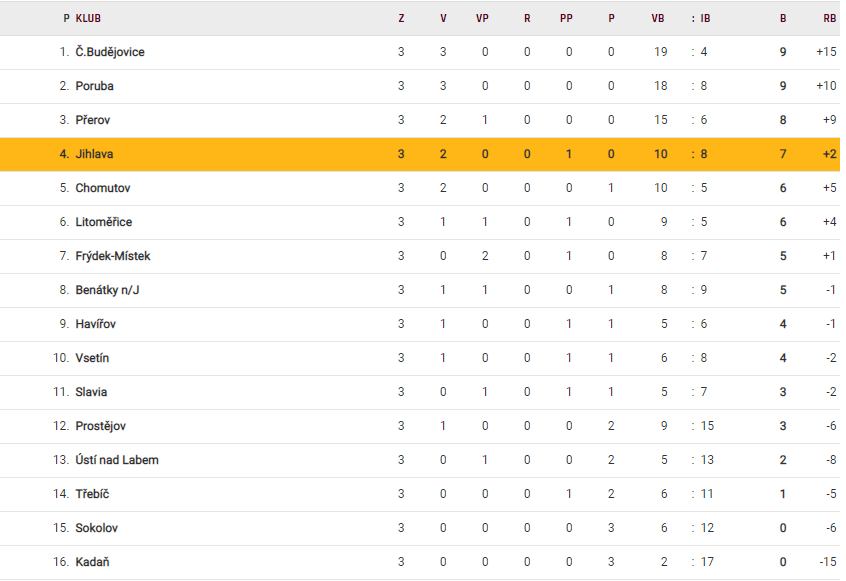 Tabulka Chance Ligy 2019/2020 po třetím kole