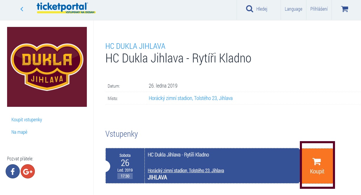 Pořízení vstupenky je jednoduché a zabere pouze pár minut, resp. několik kliknutí. Po registraci/přihlášení do sítě Ticketportal si zájemce může zakoupit vstupenku na vybraný domácí zápasu Dukly Jihlava, a to během pár okamžiků.