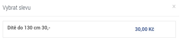 Vybrání slevy - dítě do 130 cm: