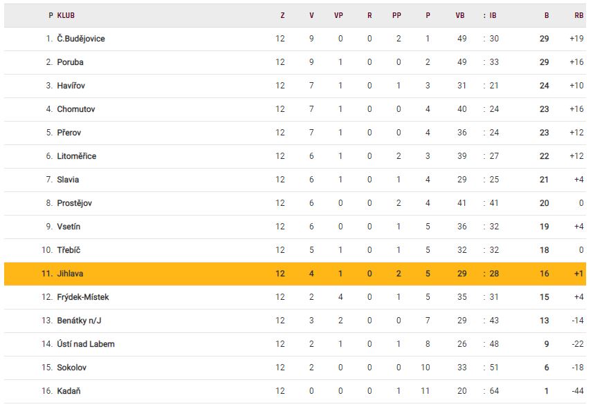 Tabulka Chance Ligy po 12. kole