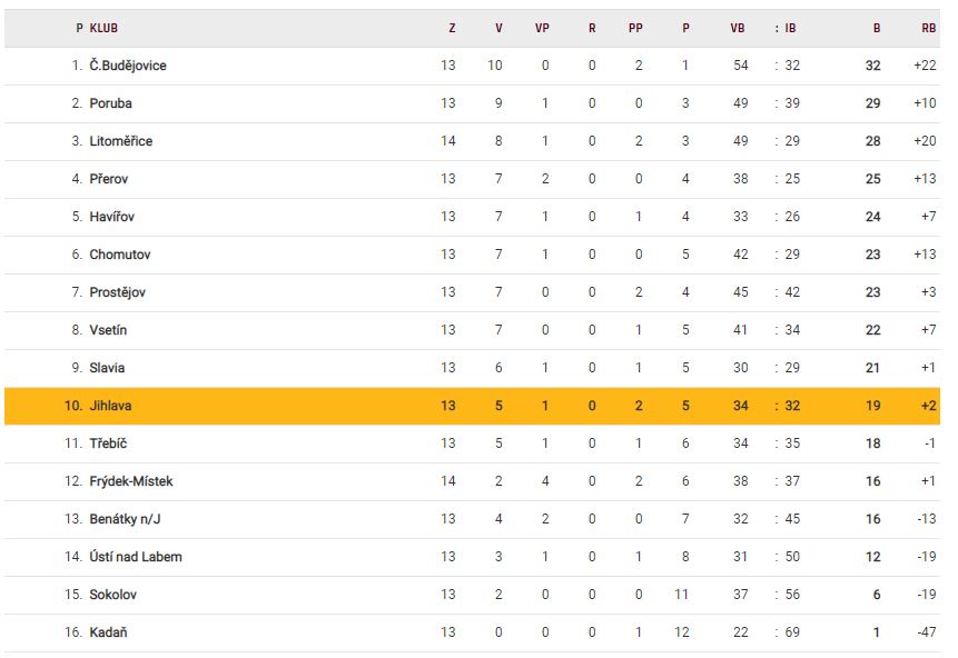 Tabulka Chance Ligy 2018/2019 po 14. kole: