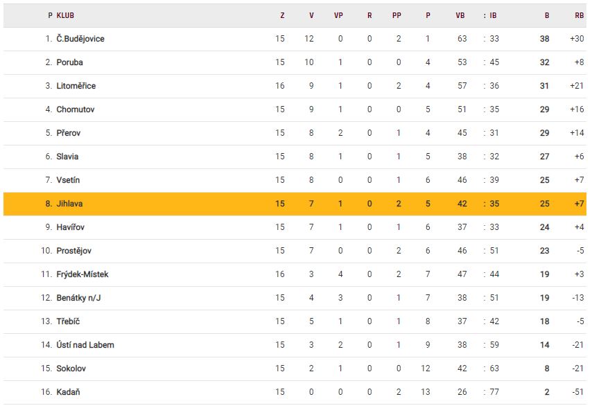 Tabulka Chance Ligy 2018/2019 po 15. kole:
