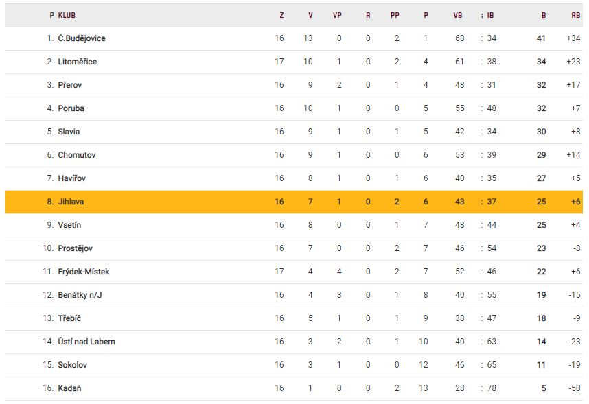Tabulka Chance Ligy 2019/2020 po 16. kole