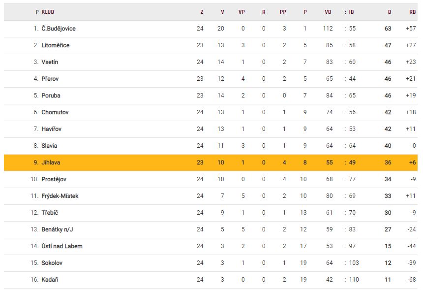 TABULKA CHANCE LIGY PO NEÚPLNÉM 24. KOLE