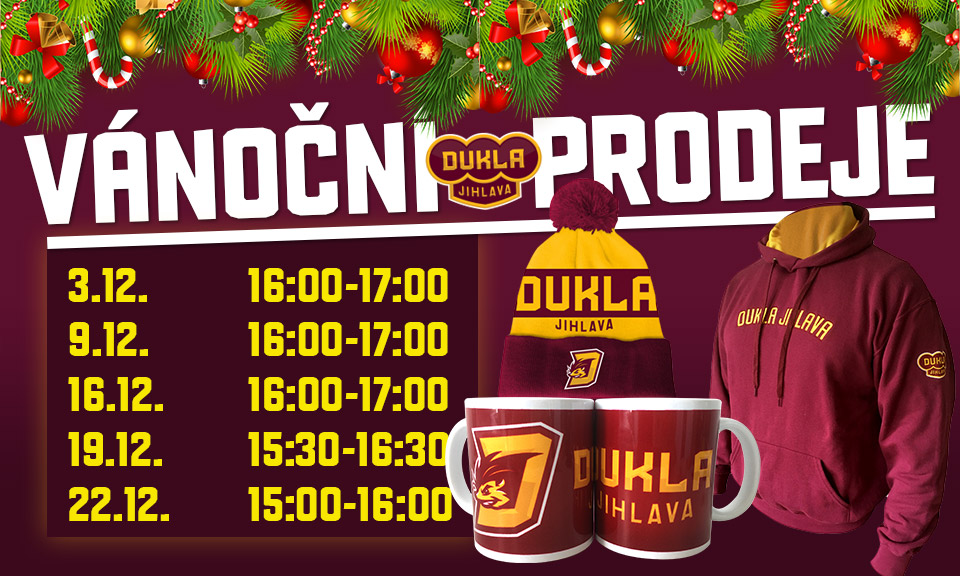 Vedle těchto termínů můžete do fanshopu přijít i během termínů domácích zápasů Dukly. Poslední dvě kola základní části se odehrají v pondělí 2.12.2019 (od 17:30 proti Sokolovu) a v sobotu 7.12.2019 (od 17:30 proti Třebíči). Poté bude rozlosována nadstavba, která začíná v úterý 17.12.2019.