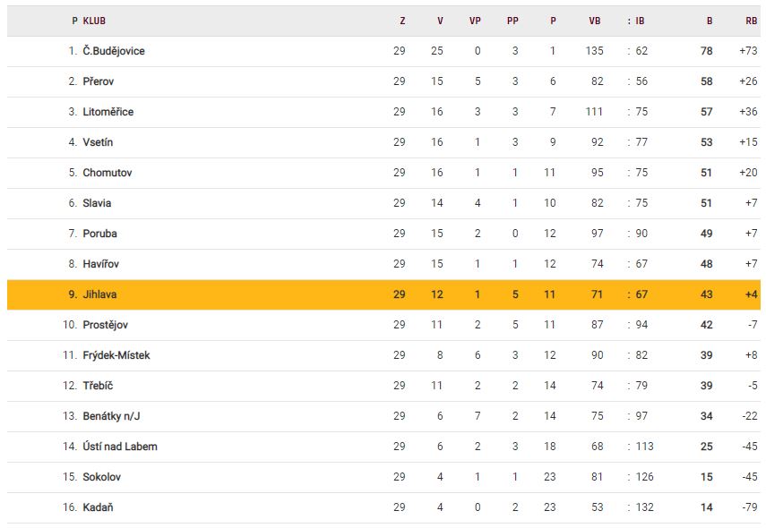 29. kolo Chance ligy: SK Horácká Slavia Třebíč – HC Slavia Praha 4:1