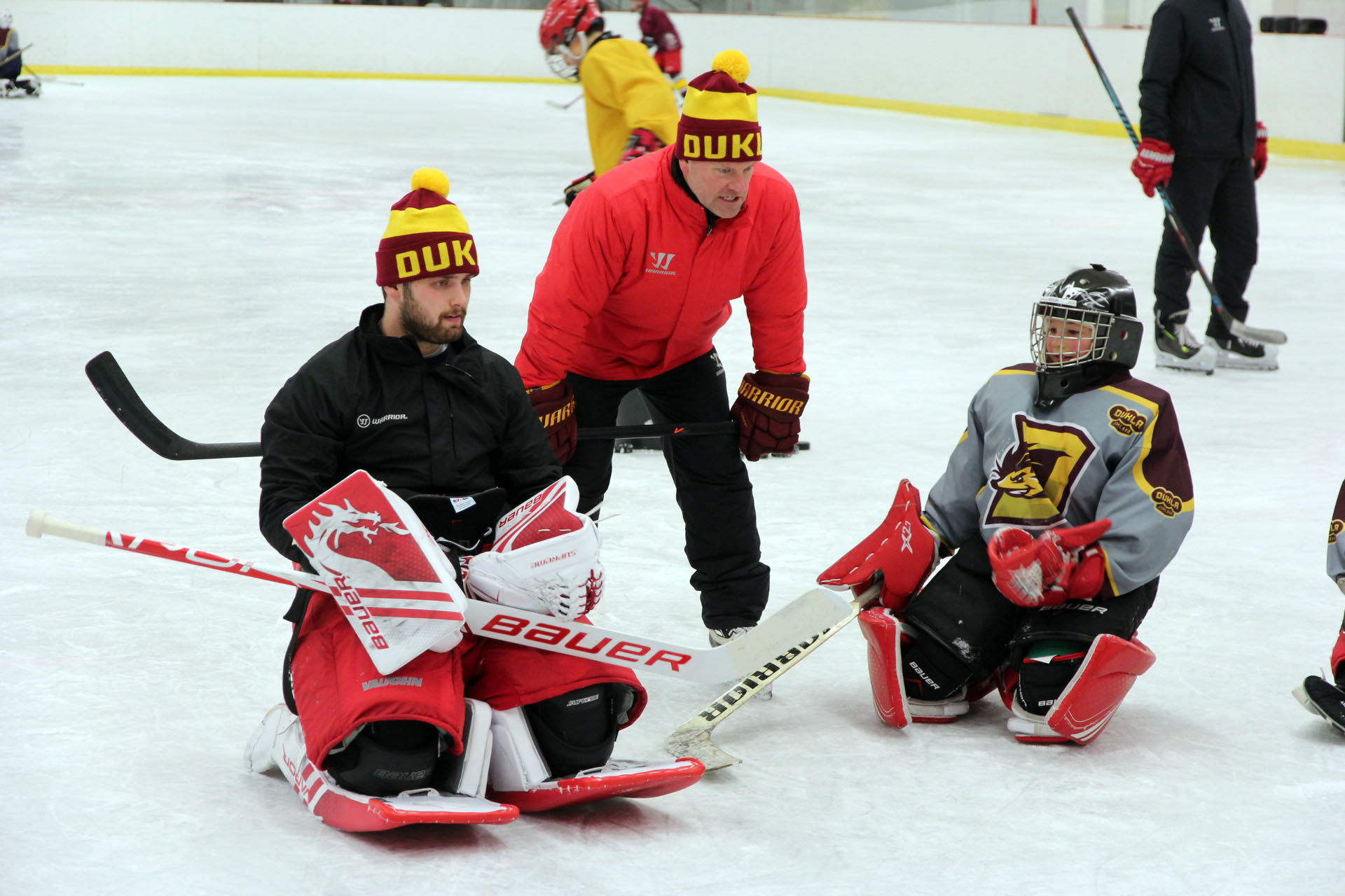 V pondělí 13. ledna odpoledne zavítal na trénink mladých gólmanů Dukly, spolu s Petrem Jarošem, Lukášem Sáblíkem, Janem Dršatou a Danem Šťastným, i Patrik Bartošák, který se momentálně připravuje s Duklou. Gólman, který ještě loni chytal za národní tým a pokoušel se o NHL, rozhodně byl vítaným zpestřením. Jeho přítomnost, postřehy a cenné rady si mladí gólmani pořádně užili. „Říkali jsme si, že když máme dneska brankářský trénink, že Patrika pozveme, potrénujeme a využijeme hodinu ledu. Samozřejmě kluci, když Patrika viděli, tak byli nadšení. Ptali se, jestli je možné, že by se na ně přišel podívat a já jim říkal – co kdyby přišel a byl jeden z trenérů? Zavládlo nadšení a už jsme měli přichystané, že Patrik bude mít dnes na starosti jedno stanoviště,“ hlásí šéftrenér gólmanů Dukly Petr Jaroš a dodává, co si mladí gólmani pro „Bartéze“ připravili: „Kluci mu připravili přivítání, že když přijel na led, tak mu všichni zatleskali hokejkama, pozdravili ho a byli rádi, že měl na starosti jedno stanoviště.“