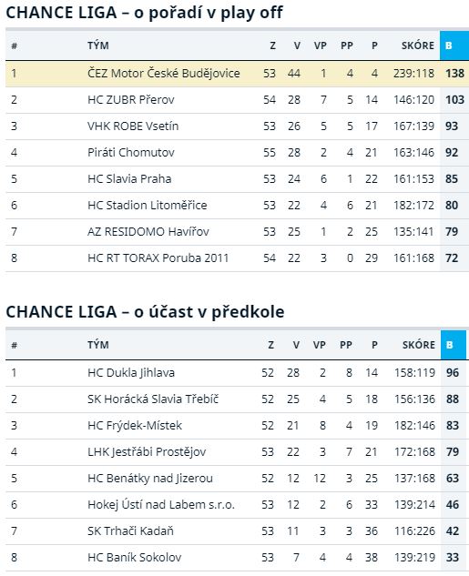 Předehrávka, úterý 25. února 2020: ČEZ Motor České Budějovice - HC Stadion Litoměřice (17:30)