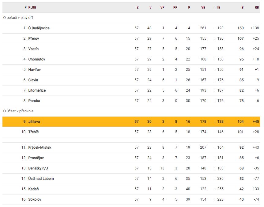 HC Dukla Jihlava má předkolo play-off jisté, začne ho 9. března na ledě soupeře