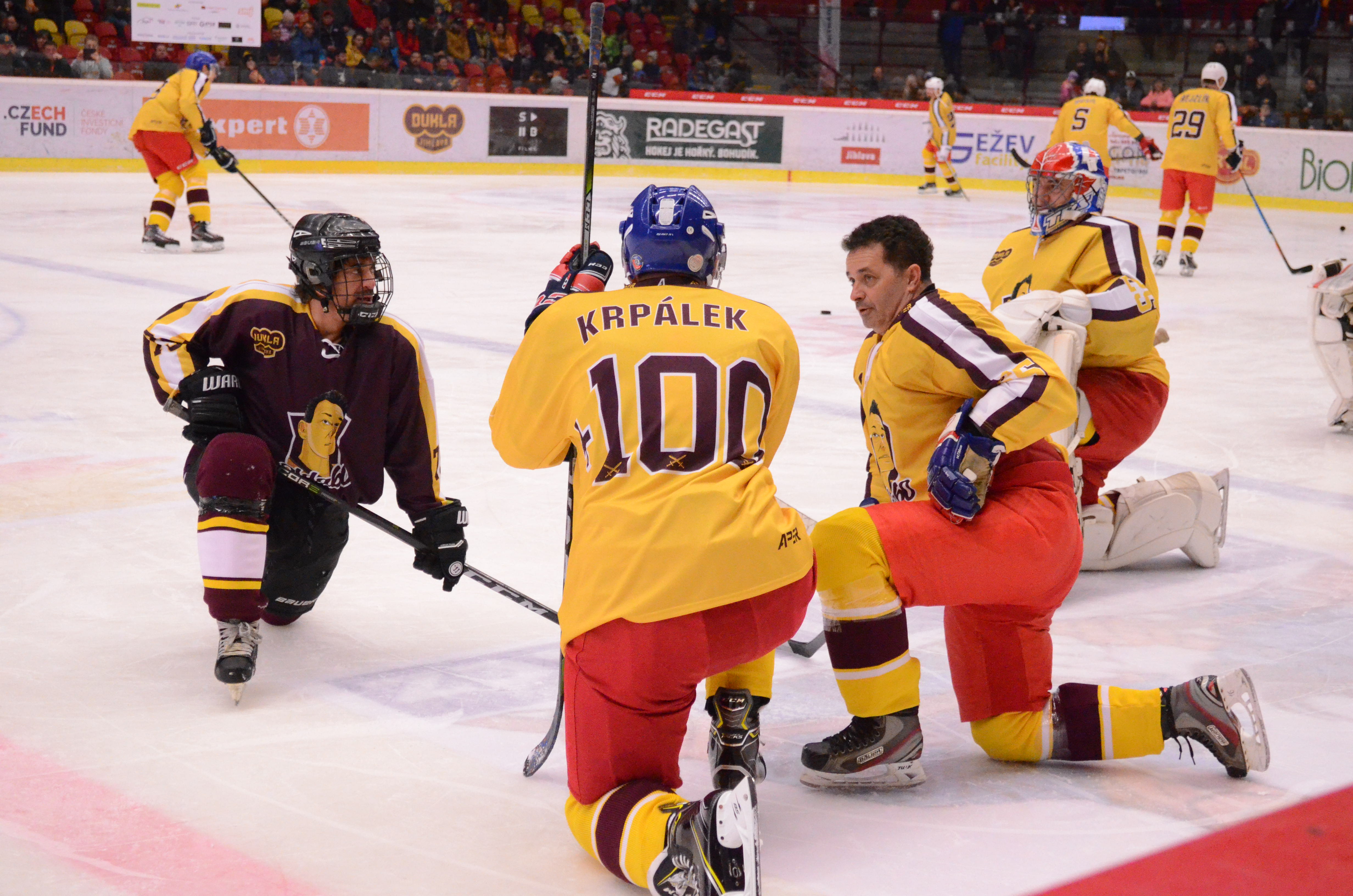 Judo a hokej jsou naprosto odlišné sporty, proto se nabízí otázka, co Lukáš Krpálek a brusle? „Tak hokej mám moc rád, jako malý kluk jsem chodil bruslit a hrát hokej na rybník, dá se říci, že jsem na ledě v zimě trávil spoustu času. Asi tak tři roky zpátky jsme s kamarády judisty začali chodit v Praze na zamrzlý rybník a stala se z toho tradice. Jsem rád, že jsem si takto splnil svůj dětský sen - hrát hokej. A to, že jsem mohl hrát v této exhibici je úplně super, doufám, že jsem na bruslích nezklamal,“ dodal Lukáš Krpálek, který se narodil v roce 1990, tedy v hokejové sezoně 1990/91, kdy Dukla získala svůj poslední mistrovský titul.