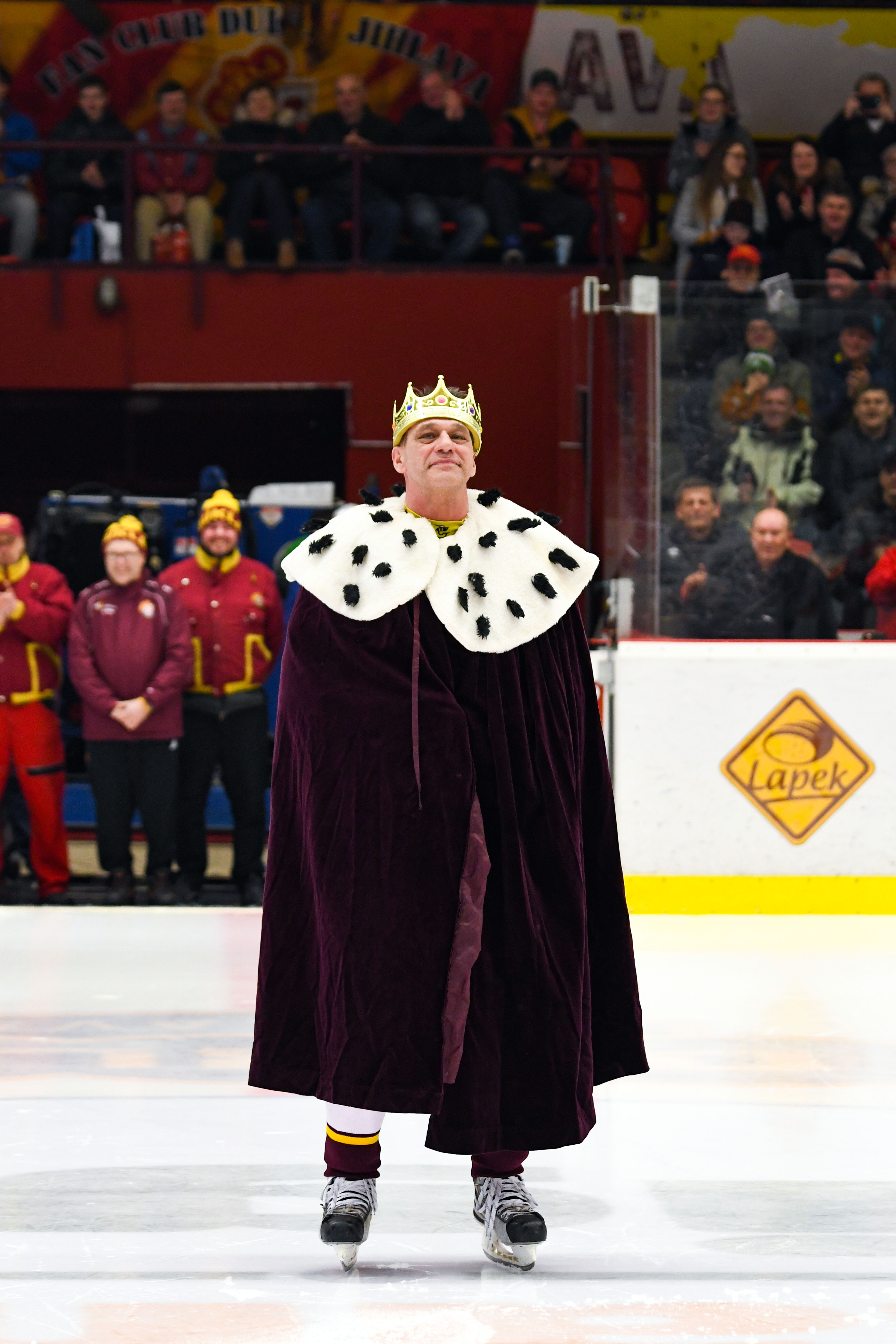 Řeč se stočila i na brankáře Dominika Haška, který se v brankovišti roztahoval jako za mlada. „Já jsem se s ním o tom o přestávce bavil a on říkal, že vymyslel nový styl. Že si jenom lehne a všichni to buší do něj,“ smál se na závěr oslavenec.
