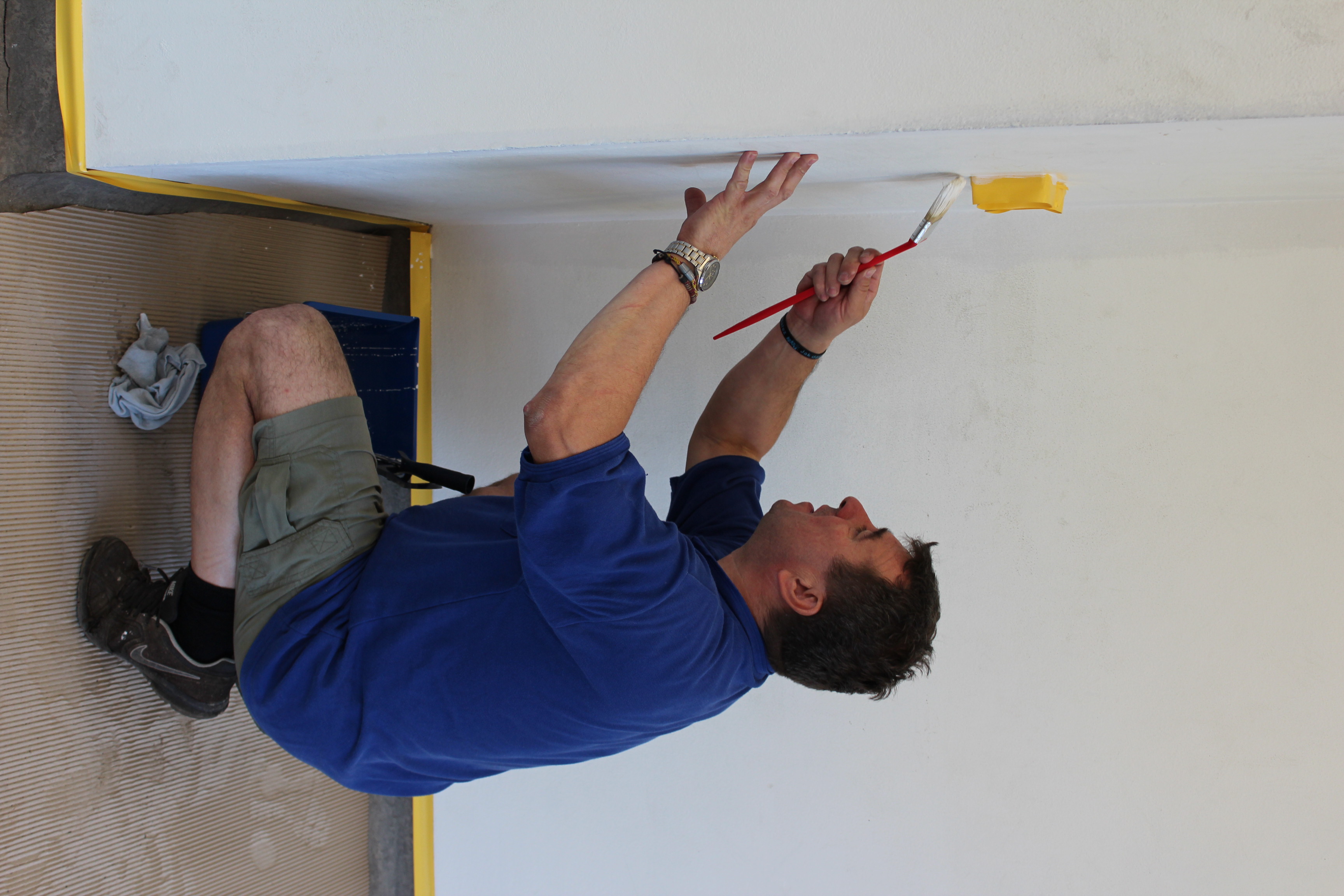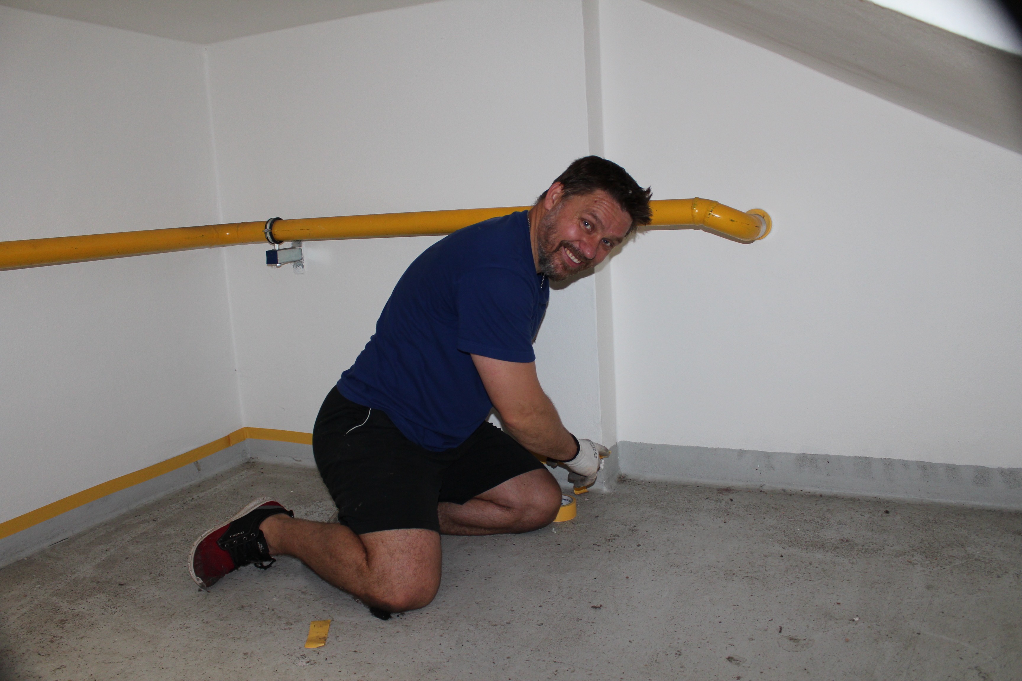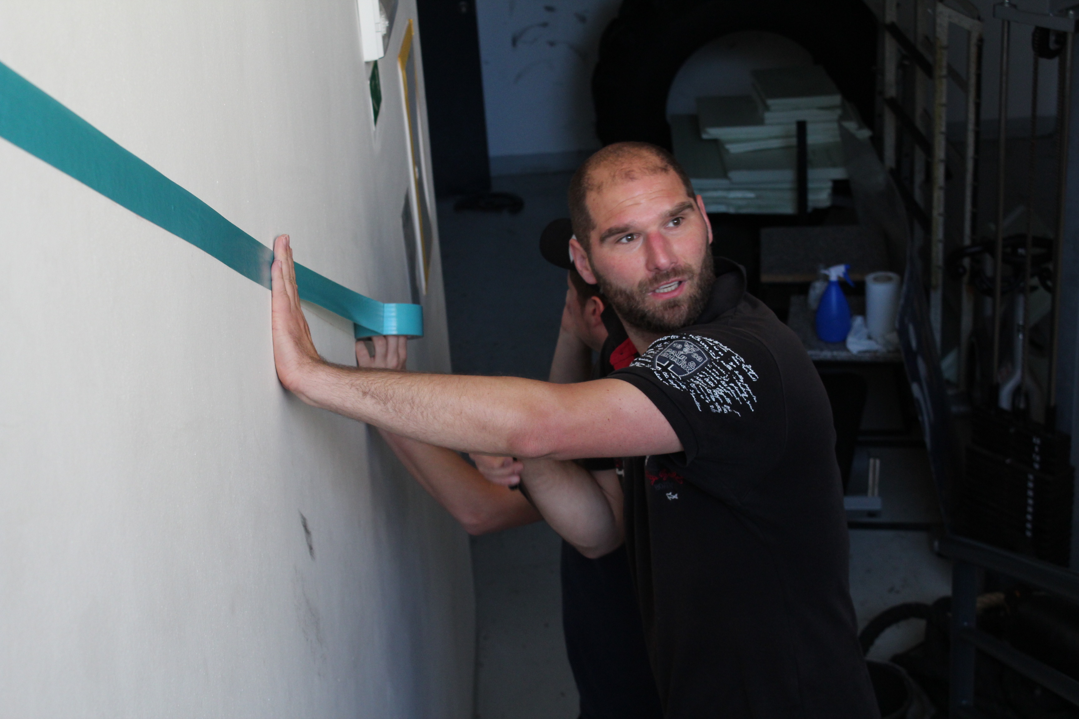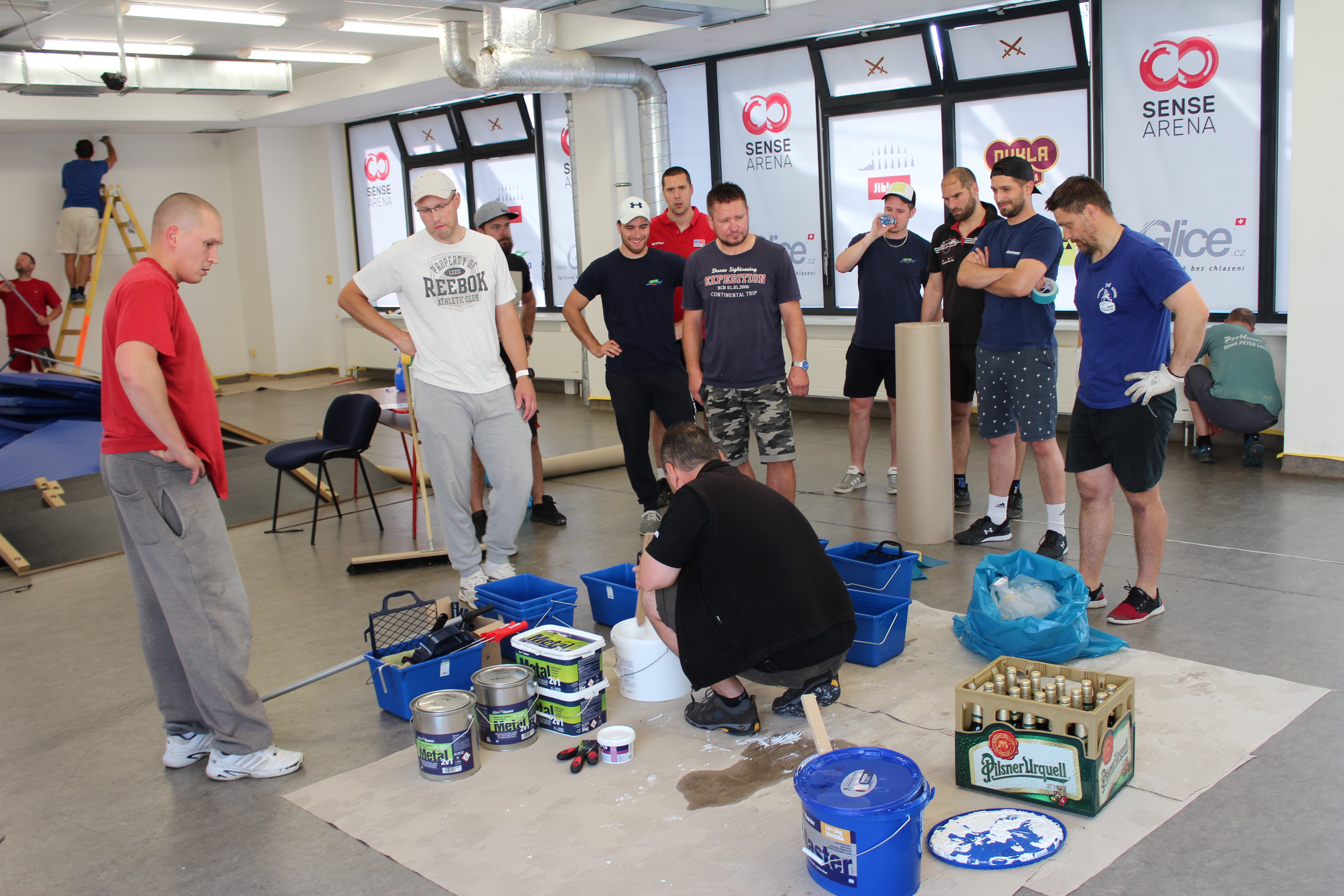 Nejpracnější byly podle Viktora Ujčíka přípravné práce. Jako při každém malování, tak i nyní se musela zakrýt místa, jenž měla zůstat barvou nedotknutá. „Bylo potřeba oblepit spoustu věcí, protože se maluje a přece jen naše ruce nejsou tak šikovné jako u profesionálních malířů. Občas nám to i ujede. Bylo důležité vše potřebné oblepit, což byla největší piplačka. Prostě abychom někde nepřetáhli a neudělali více škody než užitku. Dále se snažíme dát nějakým způsobem dohromady posilovnu. Vynosili jsme lana, snažíme se je otírat, aby byla čistá a posilovna s rozcvičovnou vypadala jako nová,“ vyjmenovává část prací lodivod A-týmu a vzápětí se smíchem poodhaluje, jak je na tom on s ručními pracemi: „Je dobré, když věci dělají lidé, kteří je opravdu umí. Když mohu, tak si na zavolám odborníka. Ani tady při brigádě trenérů jsem se do malování moc nehrnul. Radši dělám věci okolo, jako oblepování. Malování přenechávám šikovnějším,“ dodává.