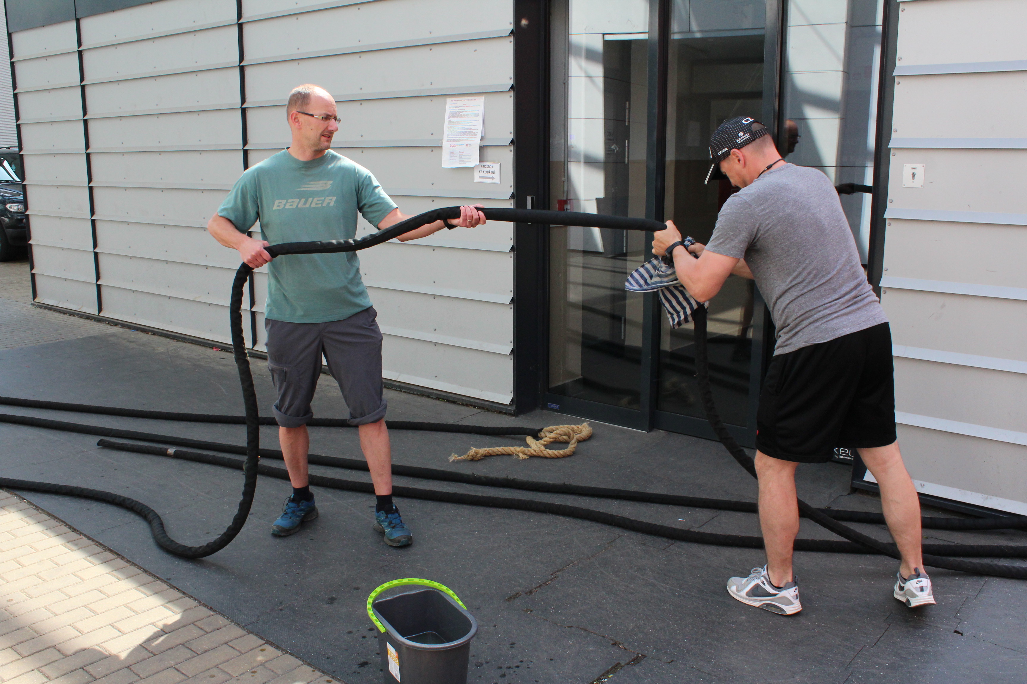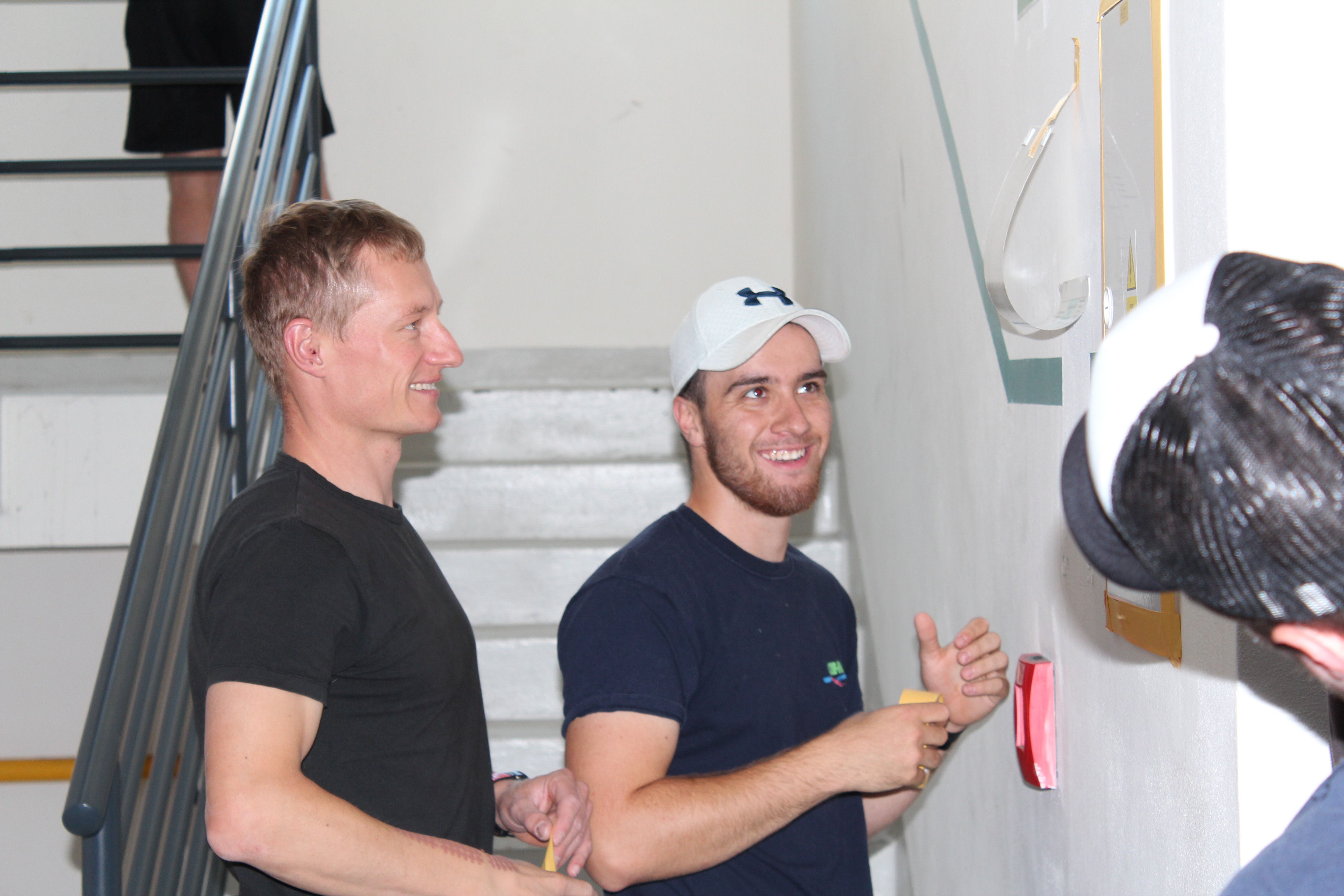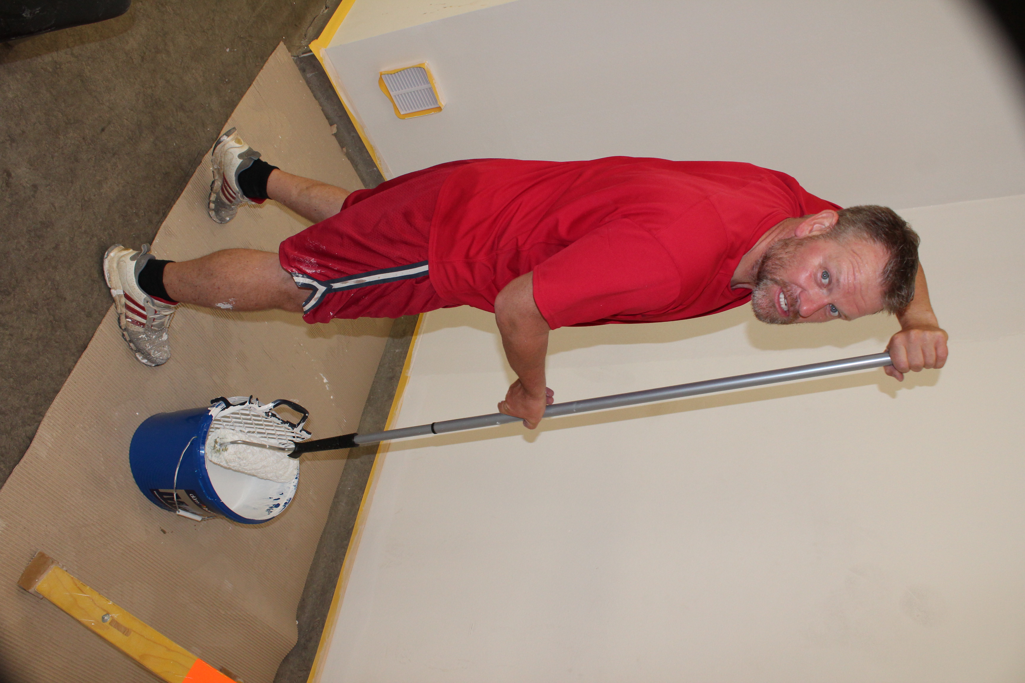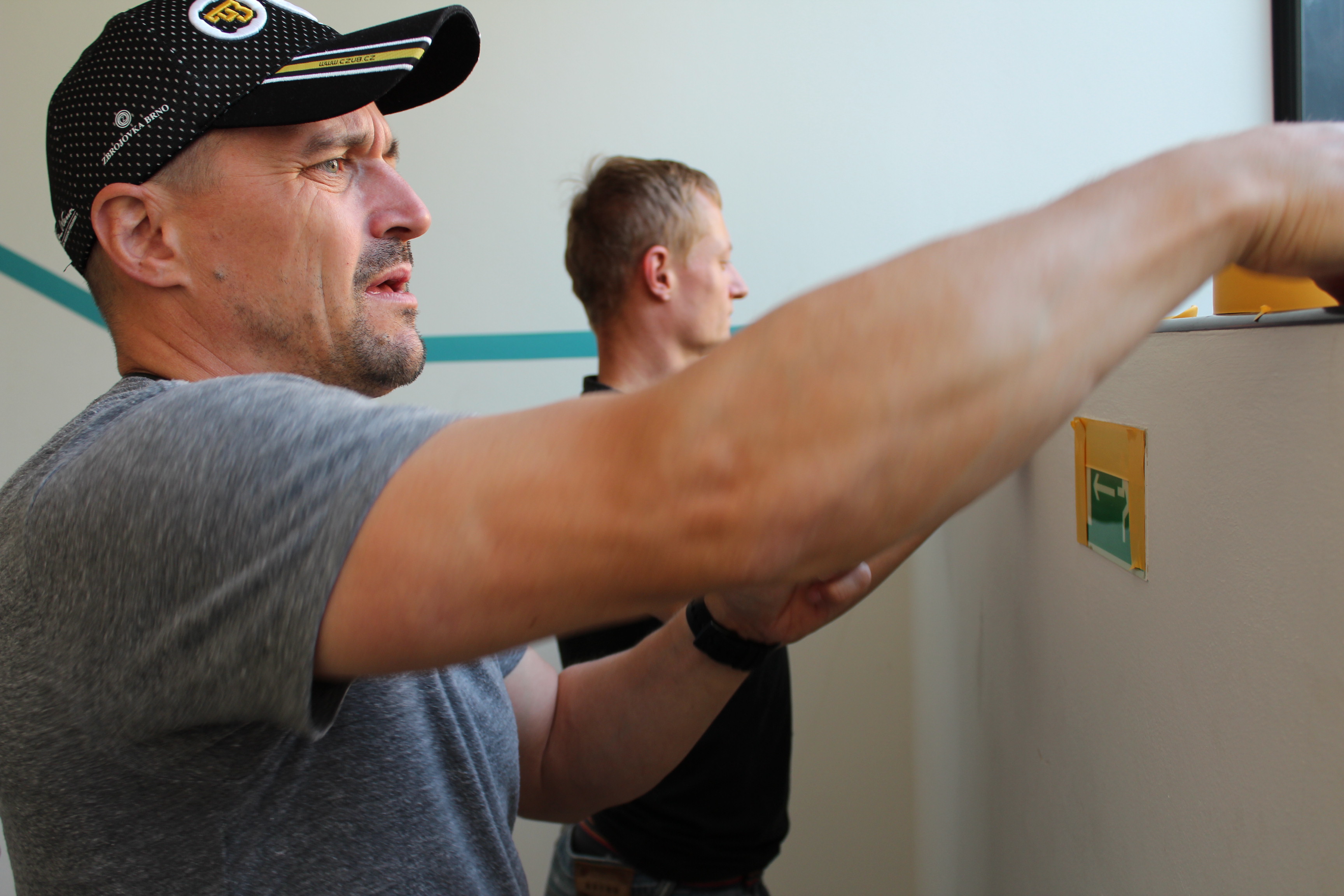 Nejpracnější byly podle Viktora Ujčíka přípravné práce. Jako při každém malování, tak i nyní se musela zakrýt místa, jenž měla zůstat barvou nedotknutá. „Bylo potřeba oblepit spoustu věcí, protože se maluje a přece jen naše ruce nejsou tak šikovné jako u profesionálních malířů. Občas nám to i ujede. Bylo důležité vše potřebné oblepit, což byla největší piplačka. Prostě abychom někde nepřetáhli a neudělali více škody než užitku. Dále se snažíme dát nějakým způsobem dohromady posilovnu. Vynosili jsme lana, snažíme se je otírat, aby byla čistá a posilovna s rozcvičovnou vypadala jako nová,“ vyjmenovává část prací lodivod A-týmu a vzápětí se smíchem poodhaluje, jak je na tom on s ručními pracemi: „Je dobré, když věci dělají lidé, kteří je opravdu umí. Když mohu, tak si na zavolám odborníka. Ani tady při brigádě trenérů jsem se do malování moc nehrnul. Radši dělám věci okolo, jako oblepování. Malování přenechávám šikovnějším,“ dodává.