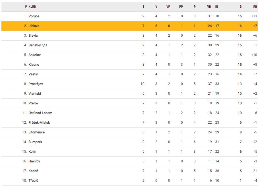 Hokejisté z Havířova odehráli zatím v letošní sezoně pouze pět zápasů, méně, pouze dva zápasy, odehrála jen Třebíč. Není tedy divu, že Severomoravané mají na svém kontě pouze pět bodů, což Havířovu stačí jen na šestnácté místo tabulky. Tým zvítězil v základní hrací době jen jednou a to, když na domácím ledě porazil Prostějov 4:1 a další body si do tabulky připsal po výhře 3:2 v prodloužení v Šumperku. Ve zbývajících třech duelech odešli hráči Havířova z ledu s prázdnou. Prohráli doma se Sokolovem 1:2, podlehli na Kladně 1:5 a ve Vsetíně 2:4.