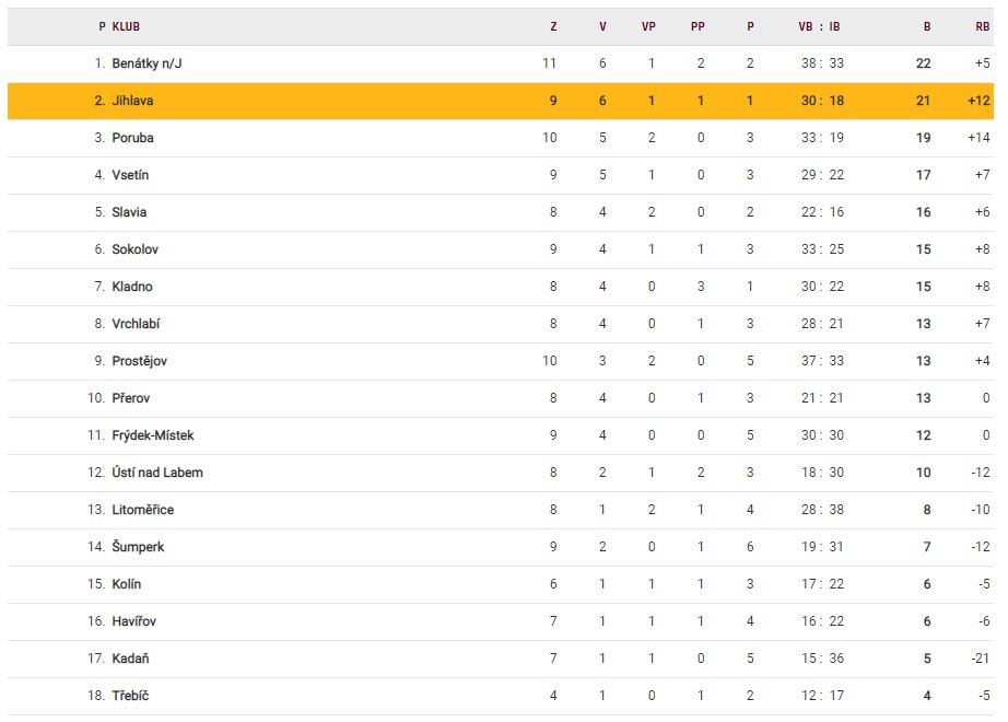 Hokejisté z Vrchlabí mají v letošní sezoně odehráno zatím osm zápasů a nevedou si jako nováček vůbec špatně. Na svém kontě mají třináct bodů, což je řadí na osmé místo osmnáctičlenné tabulky. Začátek sezony nestihli kvůli karanténě a do bojů tak zasáhli až 26. září. Nevedli si vůbec špatně, když v šesti zápasech, které odehráli do přerušení soutěže třikrát vyhráli, dvakrát prohráli v základní hrací době a jednou prohráli po samostatných nájezdech. Po restartu soutěže odehráli, stejně jako jihlavští hokejisté, dva zápasy. Nejprve prohráli v Benátkách nad Jizerou 2:1, ale ve středu si spravili na domácím ledě chuť, když porazili Ústí nad Labem vysoko 6:0.