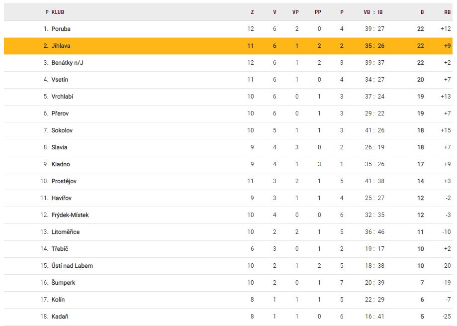 Poruba a Benátky nad Jizerou mají doposud odehráno nejvíce utkání ze všech celků Chance ligy a to dvanáct, o jeden zápas více, než má Dukla. Poruba tak má na čele tabulky 22 bodů, stejně jako Benátky a Dukla Jihlava. Severomoravané měli, stejně jako v předchozích dvou sezonách, výtečný vstup do soutěže. Do zastavení soutěže odehrála Poruba devět zápasů. Šestkrát se tým radoval z výhry, ovšem dvakrát to bylo až po samostatných nájezdech. Třikrát odešli svěřenci trenéra Františka Výborného z ledu poraženi. Obrat Porubu o všechny tři body se podařili doma Vrchlabí a Přerovu, z ostravského ledu si plný bodový zisk odvezla krátce před nucenou přestávkou po výhře 1:0 Slavia Praha. Po restartu soutěže hrála Poruba třikrát doma a dvakrát z toho zvítězila, nicméně poslední ligový zápas ji překvapili hokejisté z Litoměřic, když vyhráli 5:2.
