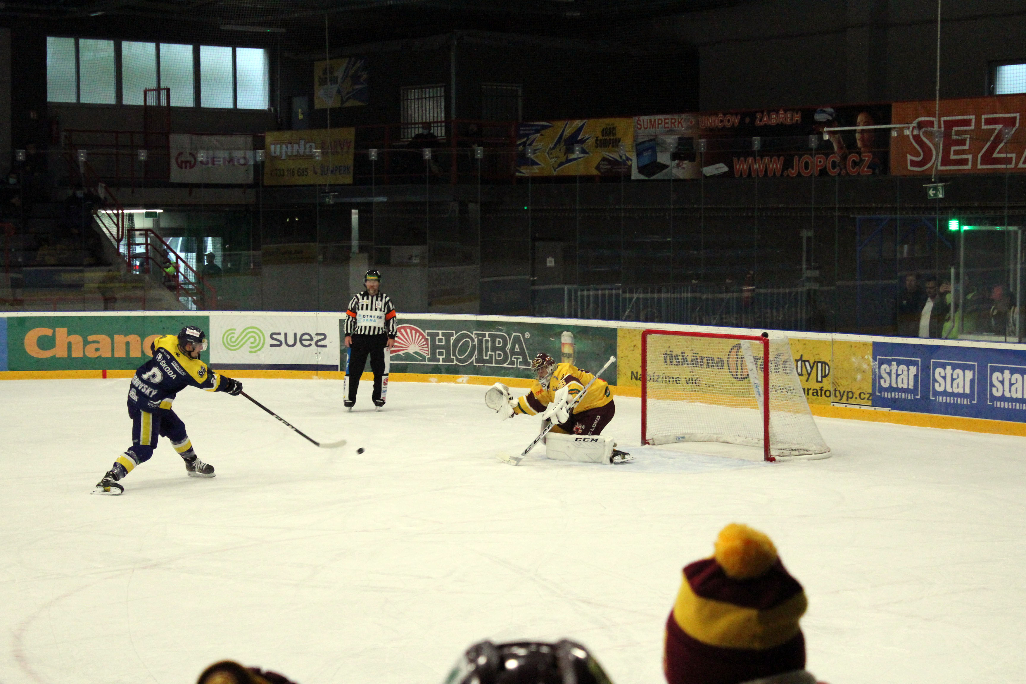 Branky a nahrávky: 15. Spratek (Jaroš, Kratochvíl), 53. Gewiese (Jaroš, Spratek) – 18. Černý (Čachotský, Illéš), 31. Zadražil (Illéš, Čachotský), 49. Eliáš. Rozhodčí: Dědek, Fiala – Hranoš, Gančarčík. Vyloučení: 3:6. Využití: 1:0. Diváci: 512. Střely na branku: 21:35. Průběh utkání: 1:0, 1:3, 2:3.