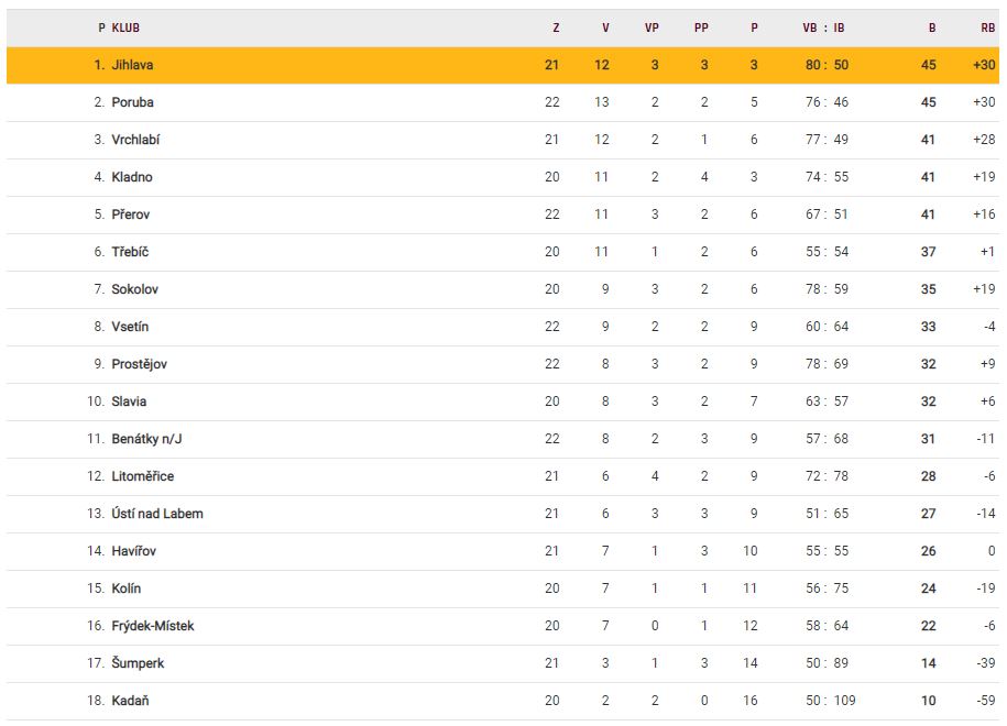 Předehrávka 26. kola: Rytíři Kladno – SK Horácká Slavia Třebíč (18:00)
