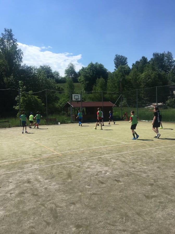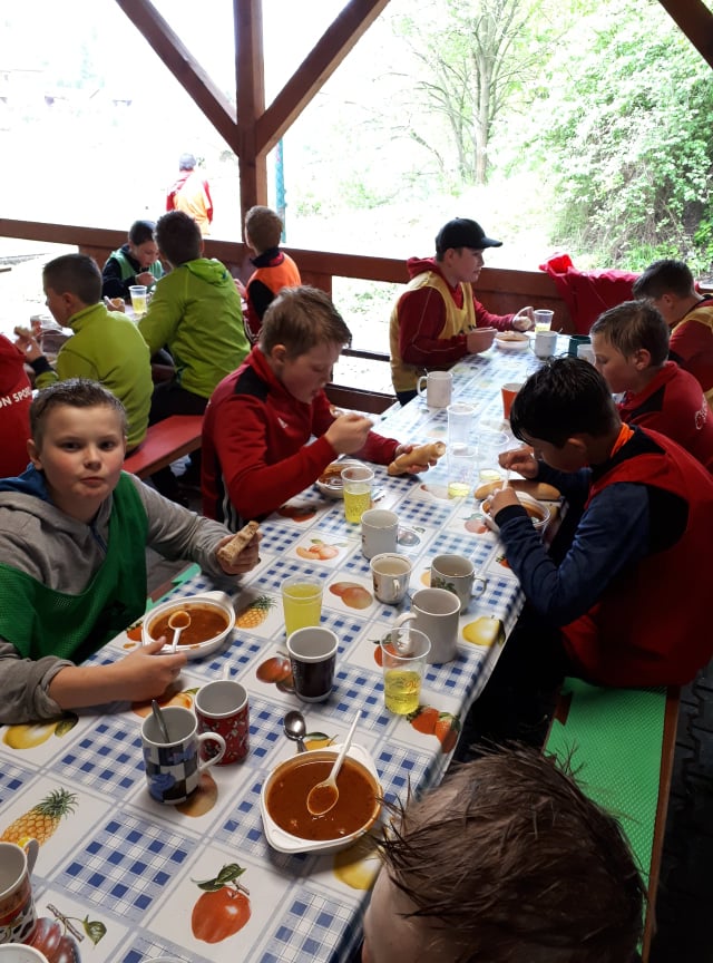 Tentýž program absolvovali v sobotu 5.6. starší žáci, kteří taktéž za téměř stoprocentní účasti, ale při krásném slunečném počasí, užívali společných chvil a tmelení party při fotbalovém a basketbalovém turnaji či v neposlední řadě cyklistickým výjezdem.