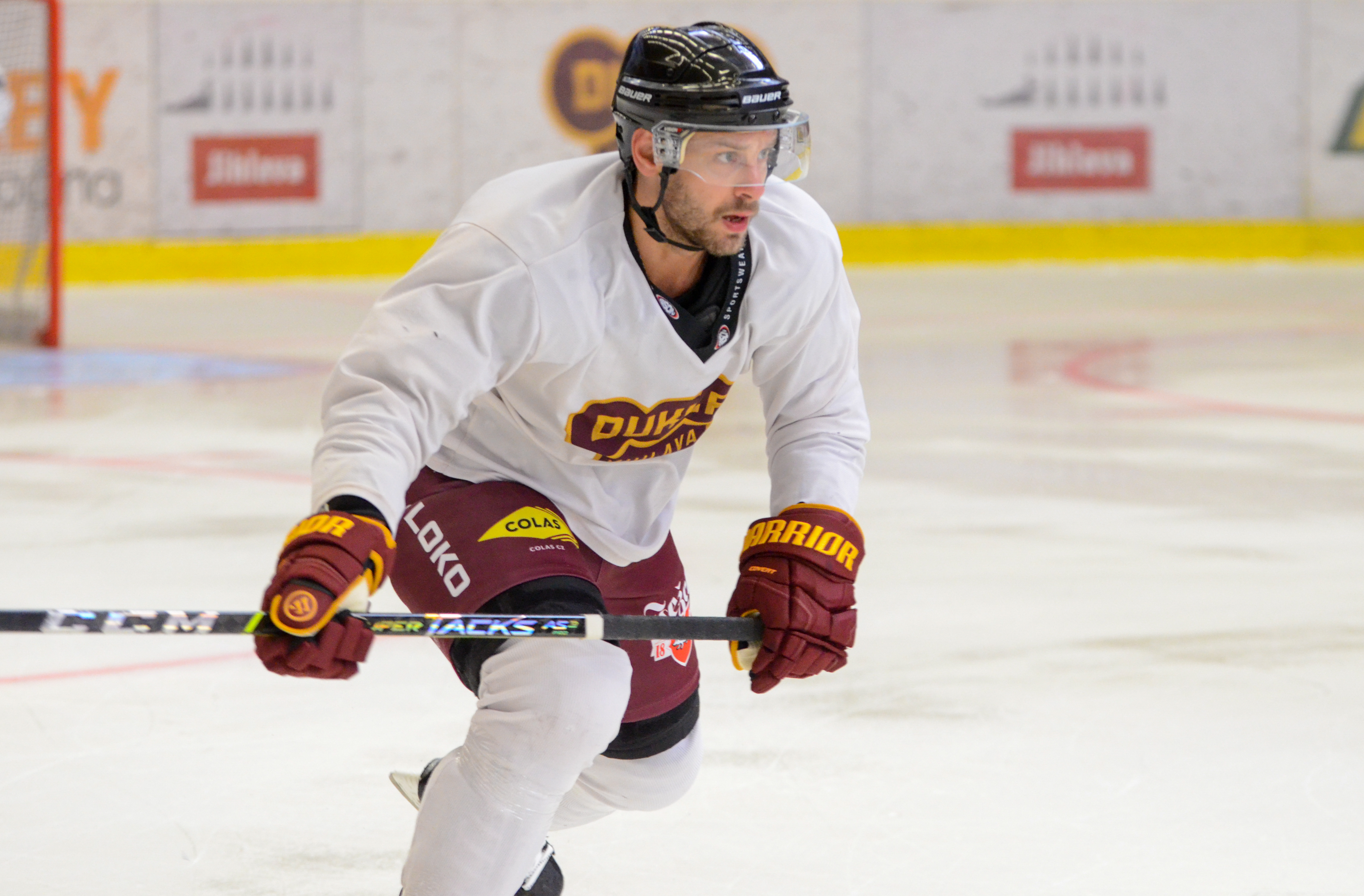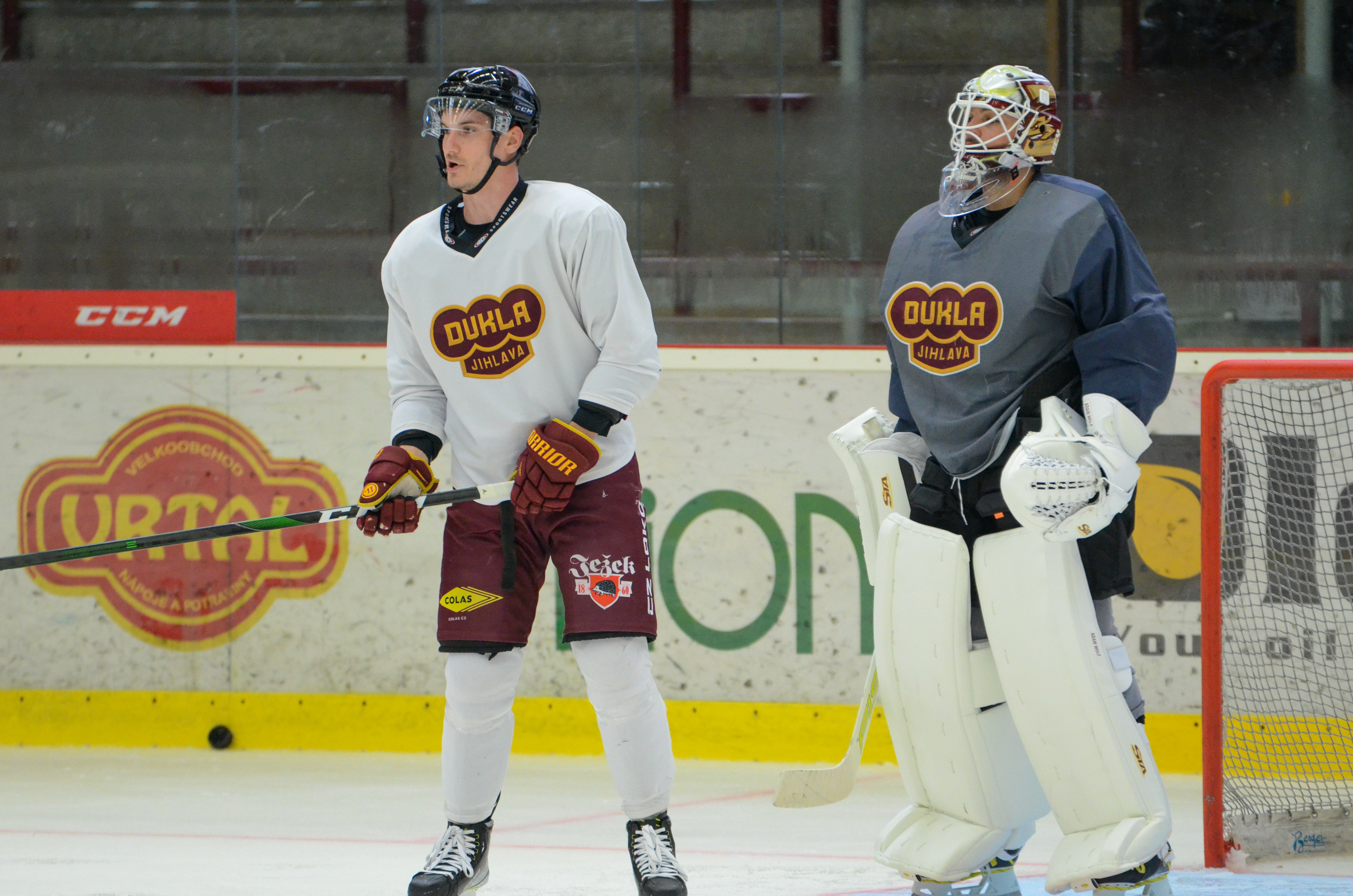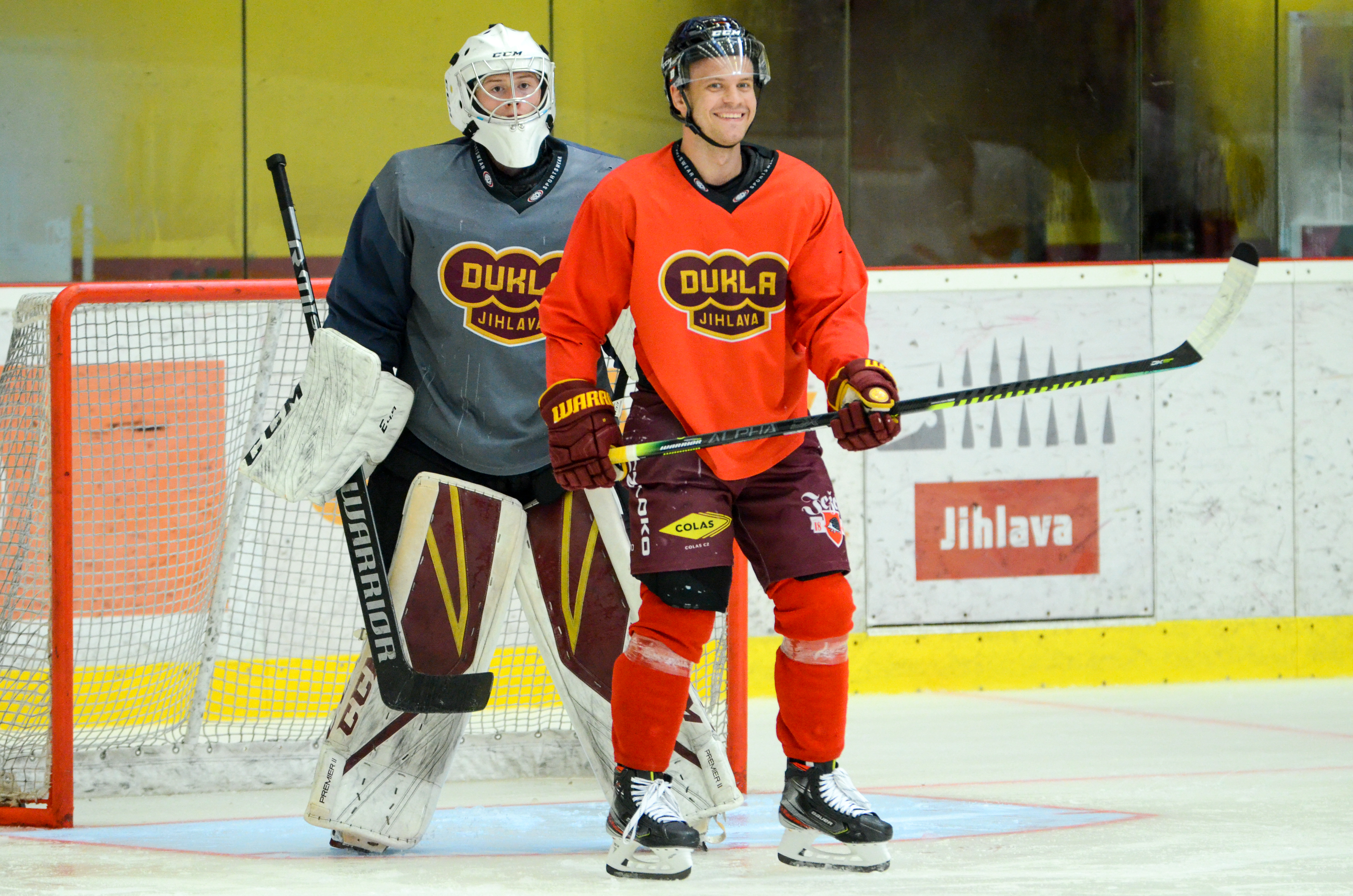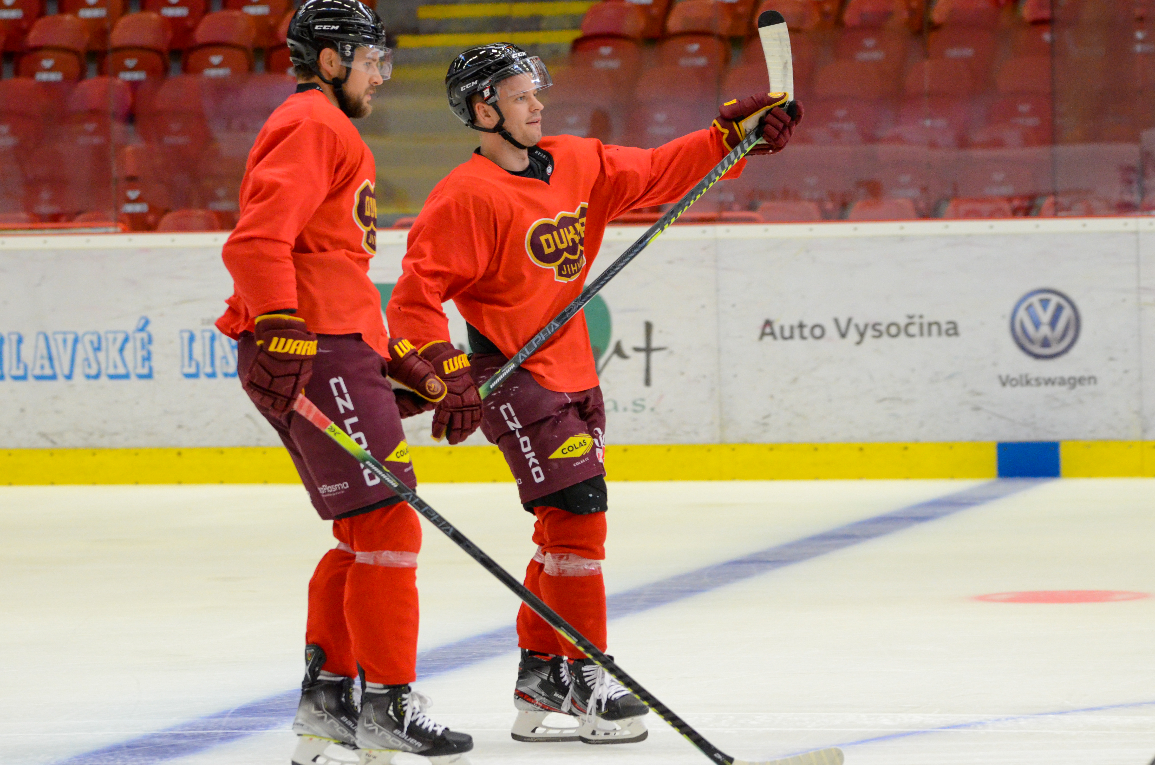 Po dovolené a volnu pořádná práce. Hokejisté Dukly Jihlava mají za sebou první tréninkové dávky na nově vytvořeném ledě CZ LOKO Arény. Trenéři Viktor Ujčík a Karel Nekvasil sledovali, jak pracuje dohromady sedmadvacet jejich svěřenců. „Neměl jsem moc nové výstroje, jelikož nemám rád, když měním před sezonou všechno. Mám pouze nové brusle a to mi stačí. Ještě mi chvíli bude trvat, než si na to zvyknu. Jinak šlo o klasický první led,“ usmíval se útočník Vítězslav Brož.