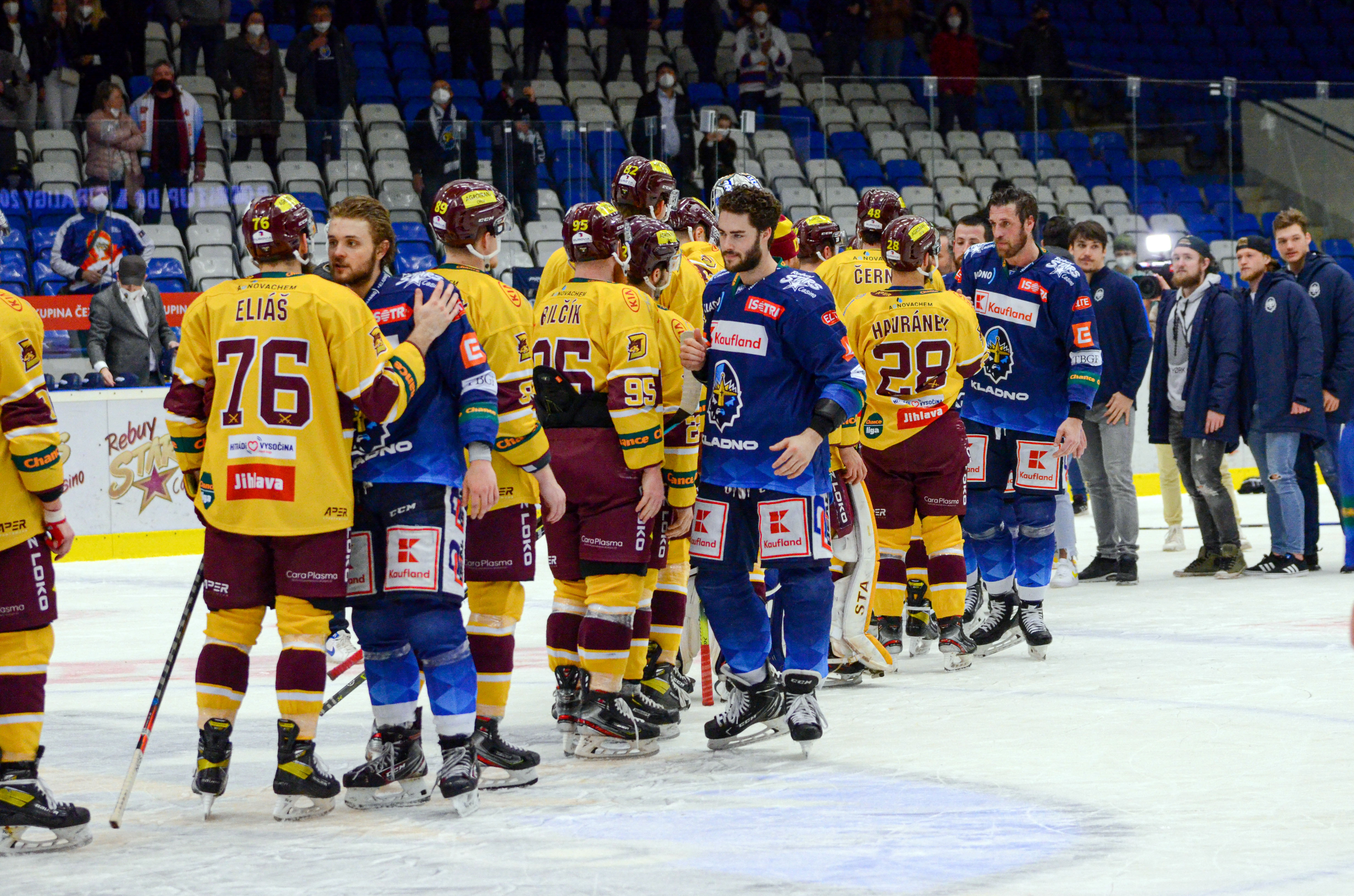 Vyjádření Bedřicha Ščerbana, jednatele HC Dukly Jihlava: „Je to nepříjemné, omezující, k naštvání. Pořadatel pak má povinnost zajistit dodržení opatření. Když ale dám na váhu, zda hrát bez diváků nebo se trochu obětovat a dodržet nařízení vlády a Ministerstva zdravotnictví ČR, tak volím hokej a jsem rád, že můžeme jít do hlediště. Loňskou sezónu byla velká škoda, že fanoušci nemohli být u toho. Atraktivní, hezký hokej s dobrými výsledky. Co více si přát. Takže bych chtěl požádat fanoušky, pojďme si užít hokeje, prožít hezký čas a neřešit těch pár nepříjemností a omezení. Tady, na hokeji to nevyřešíme. Přijďte všichni včas, ať se dostanete dovnitř. Catering bude připraven na větší návštěvnost, tak se zatím můžete občerstvit. Užijme si to, pomozme hráčům k vítězství. Těšíme se na Vás, to mluvím za vedení, zaměstnance i za realizační tým a hráče. Pojďme si opět užívat hokeje.“