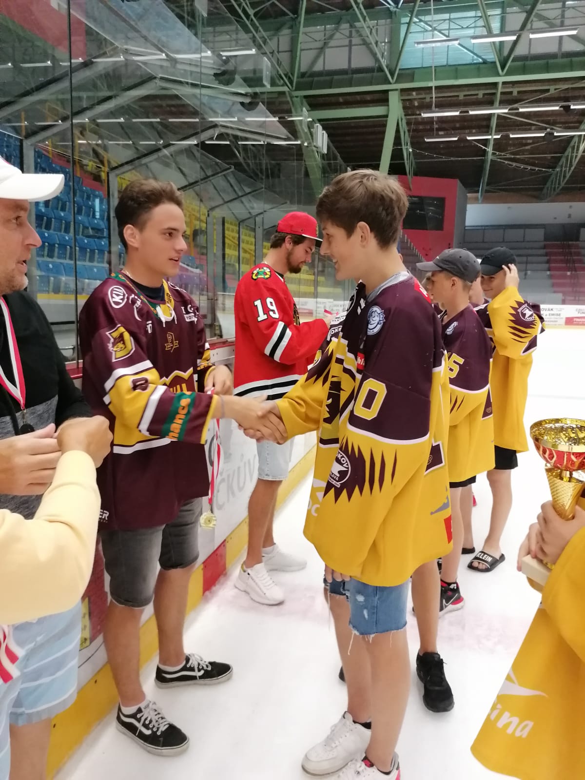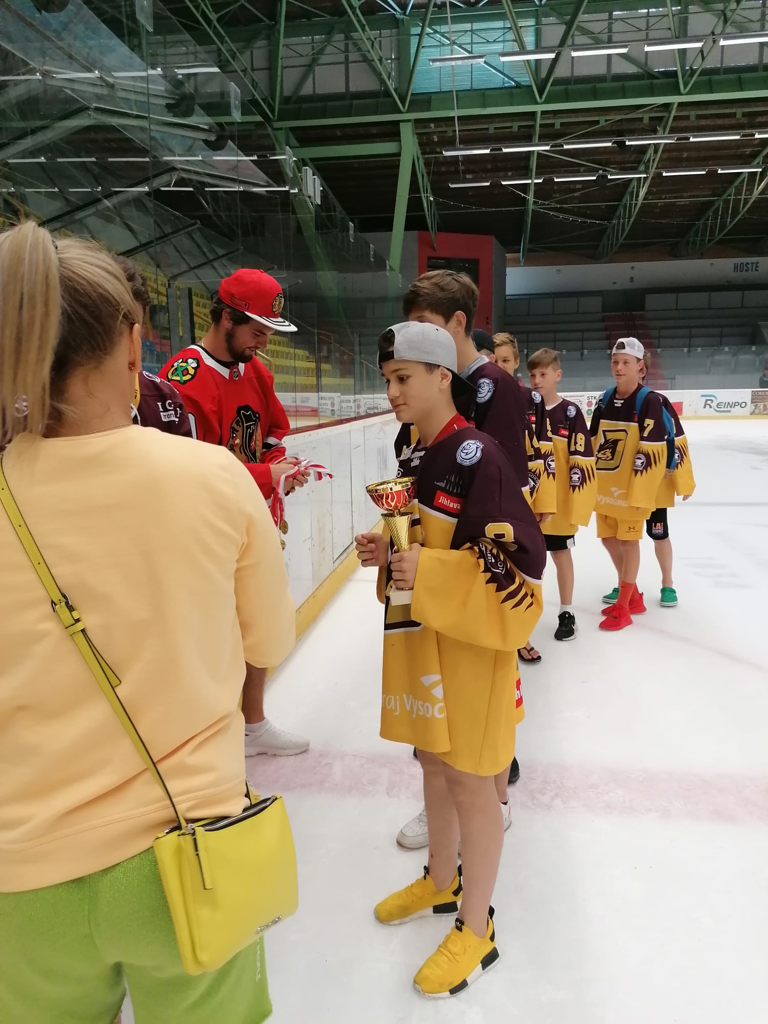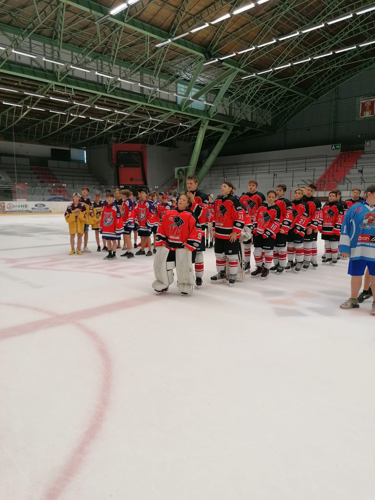 „Během a po Všesportovním příměstském soustředění jsme absovovali sedm tréninkových jednotek a vyrazili jsme na turnaj, kde jsme se měli utkat se soupeři, kteří mají svou kvalitu a hrají stejně jako my žákovskou ligu. Naše výkony měly stoupající tendenci, přičemž první utkání s domácími jsme kupili množství individuálních chyb a remíza byla zasloužená. Ve druhém utkání byl již výkon mnohem kvalitnější a třetí zápas byl náš nejlepší výkon na turnaji, přičemž jsme tyto utkání zvládli velice dobře směrem dopředu a vsítíli osm respektive deset branek za 45 minut hry, což je úctihodné. V posledním zápase nás čekal nepříjemný a neskutečně bojovný tým, ale i přes hru celého turnaje na počet 13-14 hráčů jsme se prezentovali velice dobře fyzicky a přidali k tomu pěkné hokejové momenty a došli si pro vítězství v zápase i turnaji, což je velice příjemná vzpruha do začátku sezóny a další práce.“