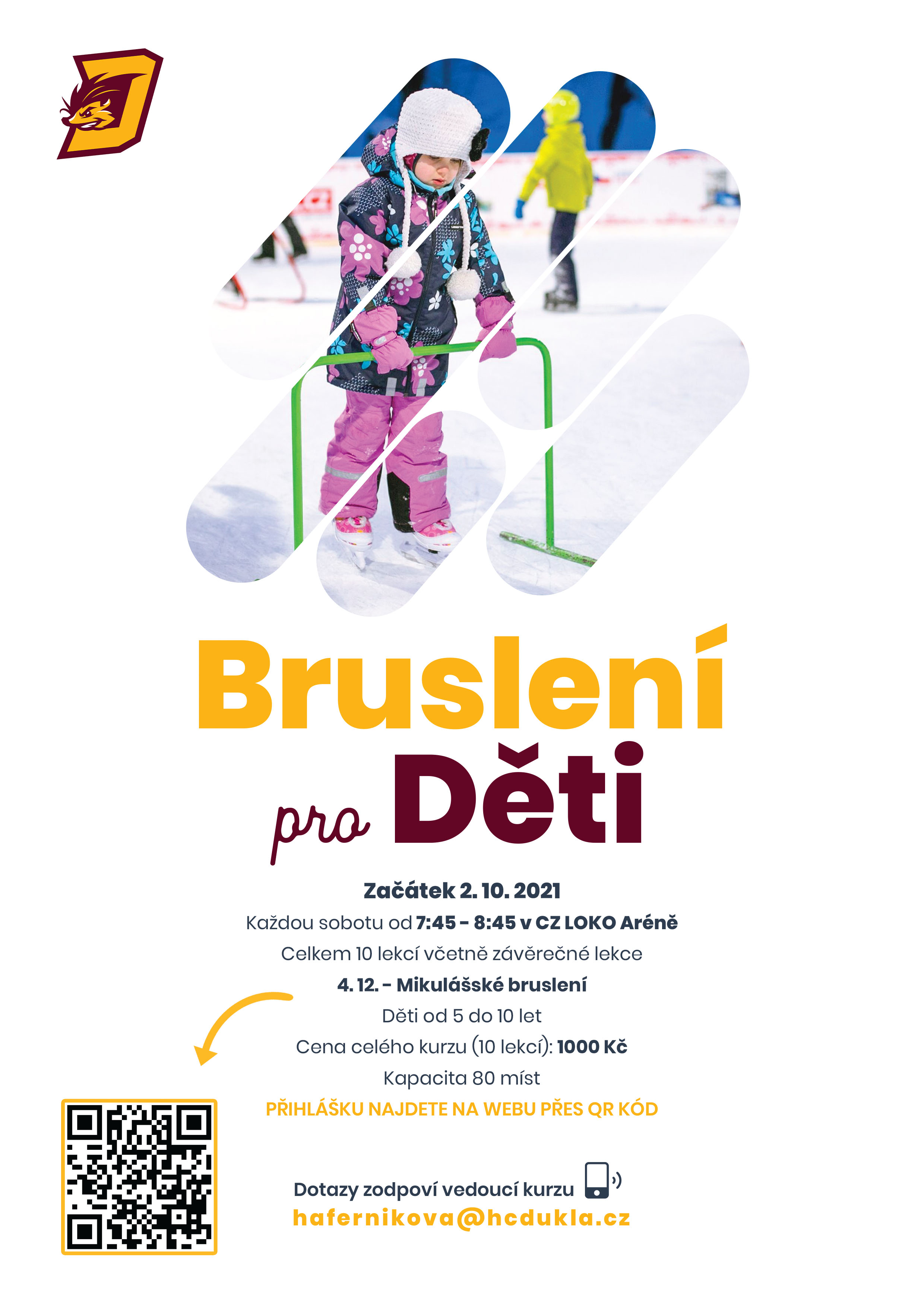 Vinou pandemie koronaviru nemohl být pořádán, ale nyní je konečně zpět. O čem je řeč? Dukla Jihlava opět pořádá oblíbený Kurz bruslení pro děti, který startuje již 2. října 2021 v CZ LOKO Aréně. Pod vedením profesionálních instruktorek bude mít dohromady 10 lekcí a vedle velké zábavy si děti užijí i závěrečné Mikulášské bruslení na ledě s karnevalem. Cena kurzu je pouze 1000 Kč a přihlásit své dítě můžete prostřednictvím přihlašovacího formuláře na tomto odkazu. Před každou lekcí je třeba mít potvrzení o negativním testu na covid-19.