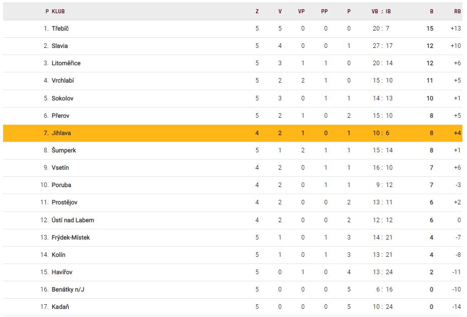 Tým plný mládežnických reprezentantů i zkušených matadorů zvládl úvod ligy na výbornou. Litoměřice zatím padly pouze jednou, ve čtvrtém kole si odvezly pouze bod za prohru 3:4 po prodloužení ze Šumperka. Všechny ostatní zápasy Stadion zvládl, je ovšem potřeba dodat, že hrál s týmy z úplného dna tabulky. Hned na úvod doma porazil 4:3 po prodloužení Frýdek-Místek, z Benátek si odvezl 3 body za vítězství 3:1, doma přehrál Kolín 5:3 a nezaváhal ani s Kadaní, nad kterou doma zvítězil 5:2. Po pěti kolech tak mohou být fanoušci středečního soupeře Dukly spokojení, jejich tým je aktuálně na 3. příčce tabulky.