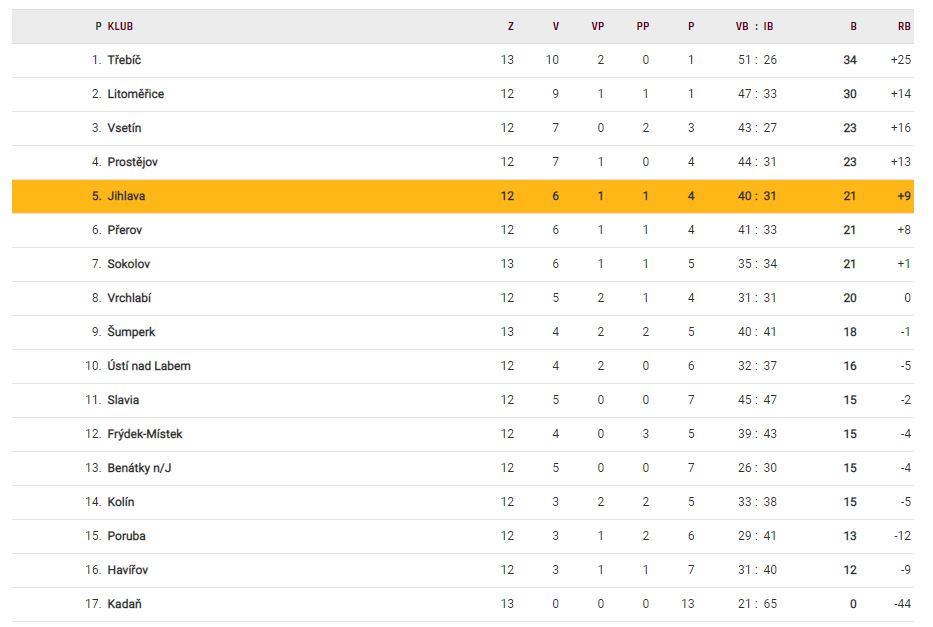 Benátky mají za sebou povedenou sérii zápasů. Čtyřikrát v řade zvítězily za tři body. Nejprve si připsaly těsnou výhru 2:1 v zápasu s Frýdkem-Místkem, doma porazily Kolín 3:0 a v Šumperku vybojovaly vítězství 5:4. V posledním kole vyzvaly Benátky na domácím ledě Kadaň, která stále nezískala ani bod. Domácí rozhodli utkání už v první třetině, kdy vstřelili Trhačům tři branky, a dle očekávání zvítězili 4:1. Díky čtyřem výhrám v řadě se Benátky odrazily ze dna tabulky a aktuálně jim chybí jediný bod na postup do předkola play-off.