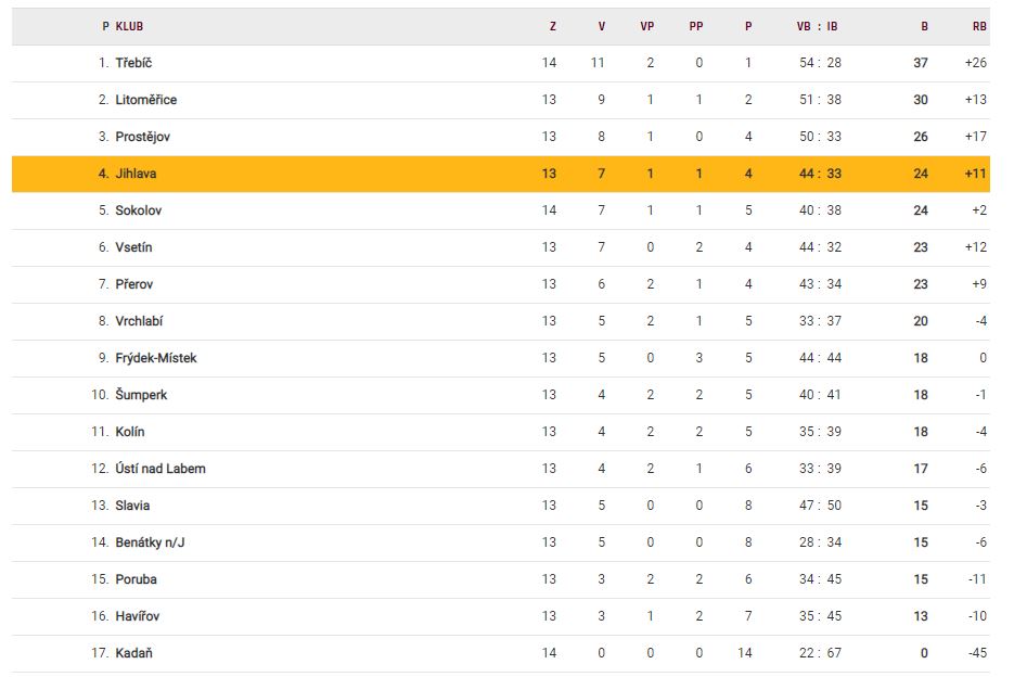 Tabulka Chance ligy po 14. kole
